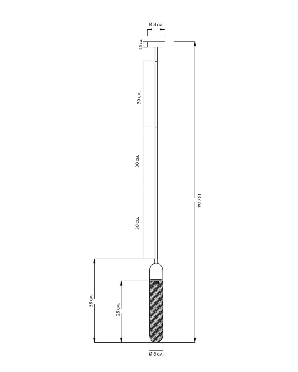 Размеры светильника: 38 см. x 8 см. x 8 см.