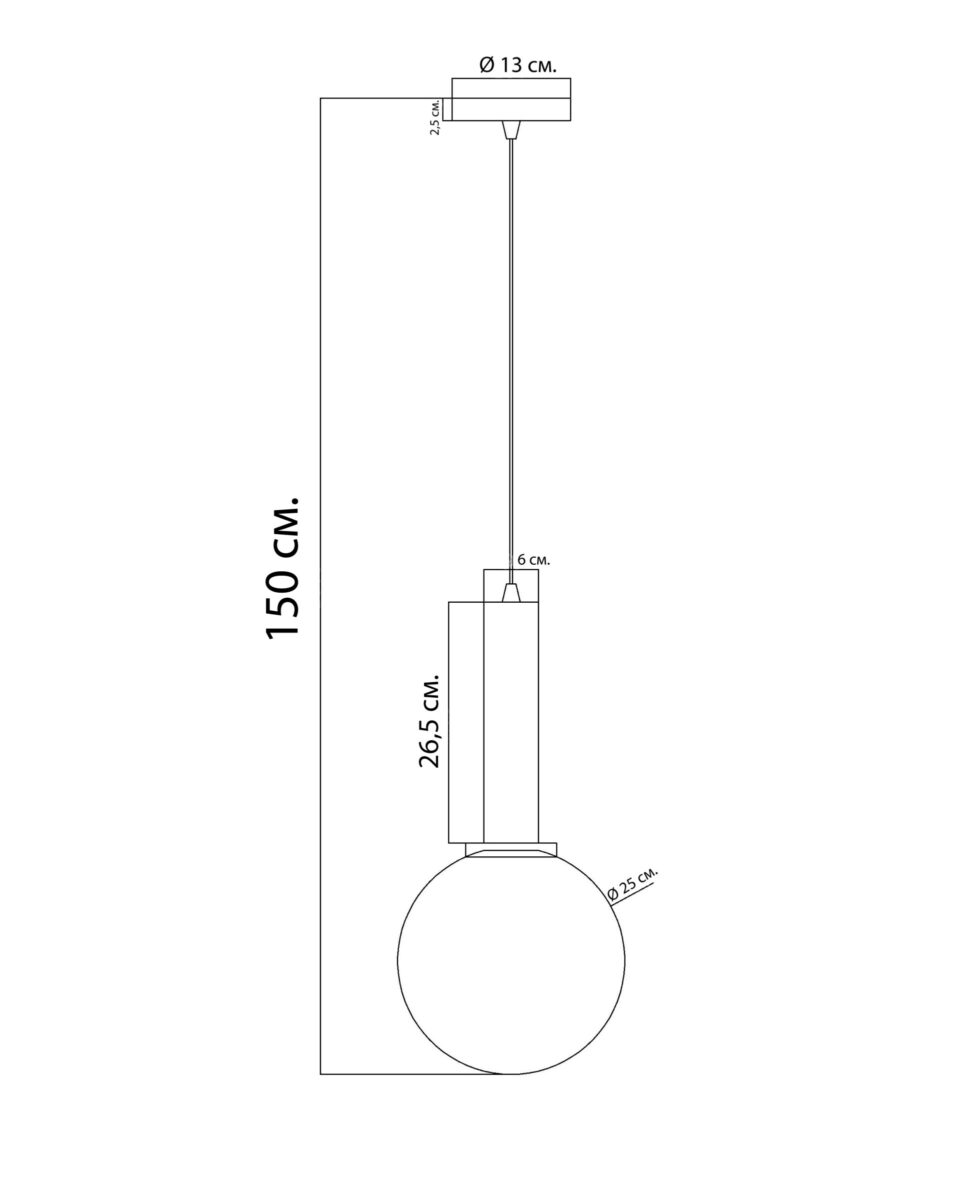 Размеры светильника: 150 см х Ø 25 см.