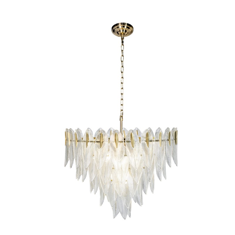 Запросить индивидуальное предложениеХотите купить люстру в спальню или современную люстру в гостиную? Представляем стильную и оригинальную модель потолочного светильника - люстру с лепестками из стекла. Она станет изысканным украшением современного помещения, прекрасно впишется в самые разнообразные интерьерные решения от арт-деко до фьюжена. Изделие со стеклянным абажуром сочетает в себе классический дизайн и изящный внешний вид. Такая люстра будет оставаться востребованной и модной на протяжении долгого времени. Рекомендуемая площадь освещения 20-25 кв.м.