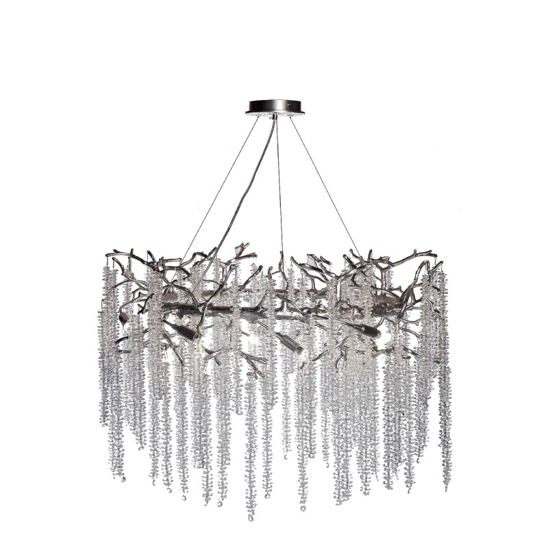 Запросить индивидуальное предложениеКрасивая подвесная люстра с максимальным градусом декоративности. Воплощение изящества, аристократизма и современных дизайнерских трендов. Это полноценный арт-объект, который сразу обращает на себя внимание благодаря внушительным размерам и оригинальному дизайну. Люстра со стеклянными подвесами идеально впишется в интерьер гостиной, холла, столовой. Сочетание металлического каркаса в виде веток и ниспадающих подвесок из крохотных прозрачных капель делает этот потолочный светильник по-настоящему роскошным украшением пространства. Рекомендуемая площадь освещения 24-30 м2.