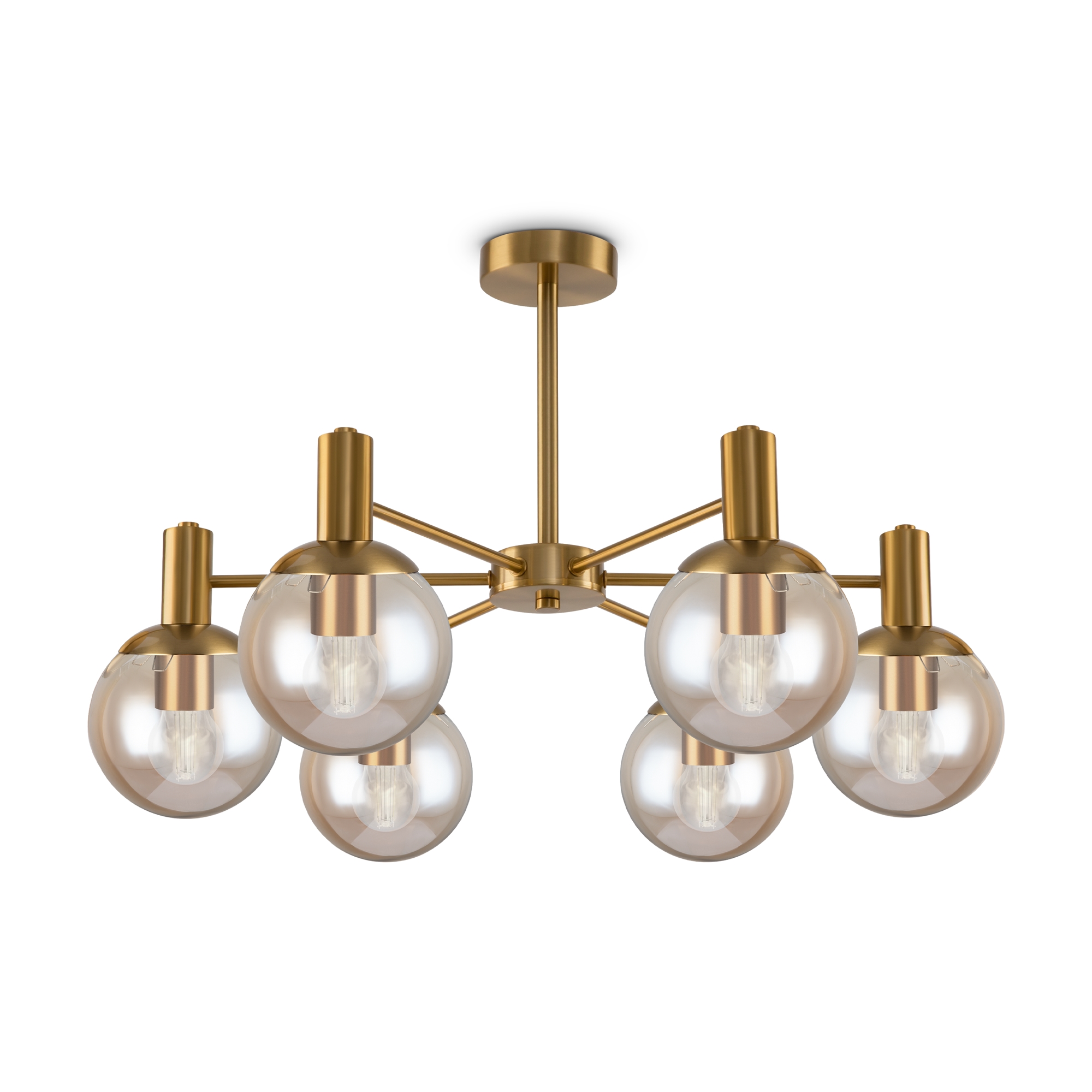 Запросить индивидуальное предложениеБрутальная романтика лофта и сдержанность минимализма объединились в дизайне серии Globo. Металлическая арматура окрашена в цвет латуни. Её строгая геометрия разбавлена округлыми плафонами-сферами. Выполненные из полупрозрачного стекла и гальванизированные в цвет шампань, они беспрепятственно пропускают свет, обеспечивая яркую направленную подсветку. Потолочные светильники серии – люстры, рассчитанные на 6 и 8 плафонов – отлично подойдут для стандартных потолков. Также в серии представлено бра для зональной подсветки. Светильники будут выигрышно смотреться в интерьерах, оформленных в стиле лофт, минимализм, сканди.