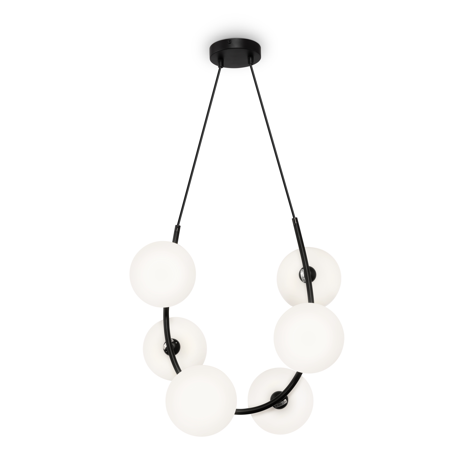Запросить индивидуальное предложениеЖемчужины света, нанизанные на тонкую металлическую нить – такой яркий визуальный образ представлен в оригинальной серии светильников Perlina. Контраст чёрного металла и белого матового стекла уравновешивает азиатский характер современного арт-объекта, позволяя сочетать его с любой цветовой палитрой. Наличие удлиненного кабеля обеспечивает удобство в эксплуатации: светильник можно использовать для подсветки лестничных пролетов, в помещениях с высокими потолками. Серия, объединившая эстетику индустриальности и модерновое настроение, удачно дополнит проекты в стиле хай-тек, минимализм, контемпорари, ретрофутуризм. Подвесные люстры на 6, 4, 3 и 2 плафона, снабженные цоколем G9, помогут организовать фоновое и акцентное освещение.