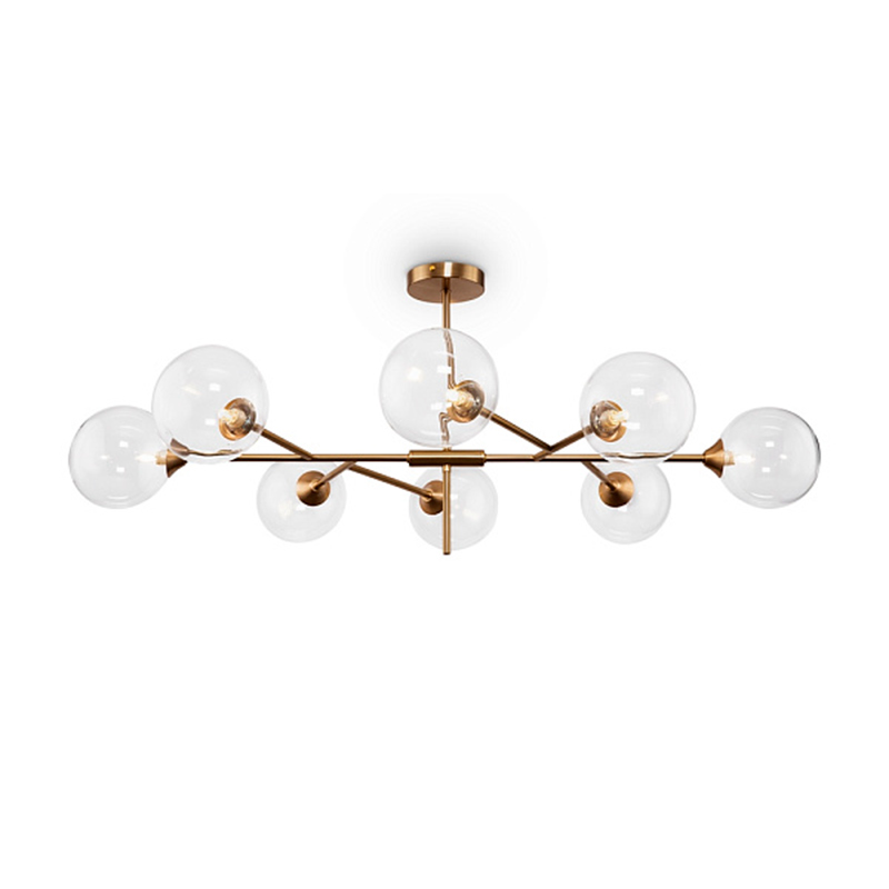 Запросить индивидуальное предложениеСерия Maddison – воплощение функциональности и гибкости. Эклектичный минималистичный дизайн вобрал в себя различные направления – от ретрофутуризма до хай-тека – но это не главная особенность светильников. Современные тренды постулируют необходимость кастомизации в интерьерном пространстве. В данном случае она проявляется за счёт регулируемого крепления плафонов: вы можете изменять направление света и дизайн конструкции по своему вкусу! Прозрачные плафоны-сферы из дутого стекла дополняет металлическая арматура благородного оттенка латуни. Серия прекрасно адаптируется в пространстве современной гостиной или кухни, оформленной в стиле mid-century modern, хай-тек, лофт, конструктивизм. Компактная высота моделей актуальна для невысоких потолков. Бра, люстры на 8 и 6 плафонов составляют комплексный ансамбль для основного и зонального освещения.