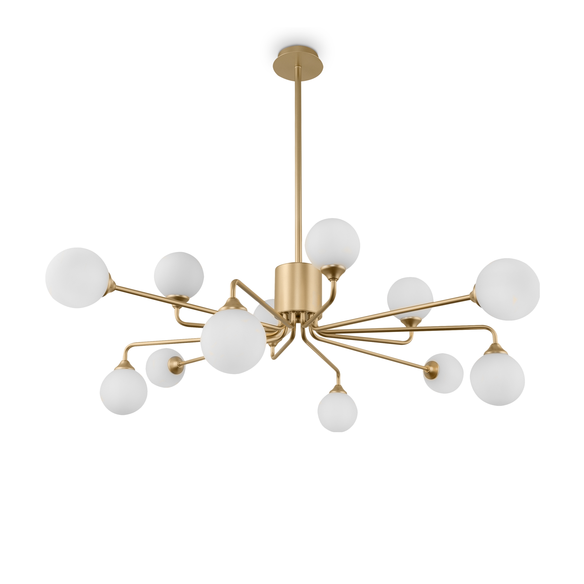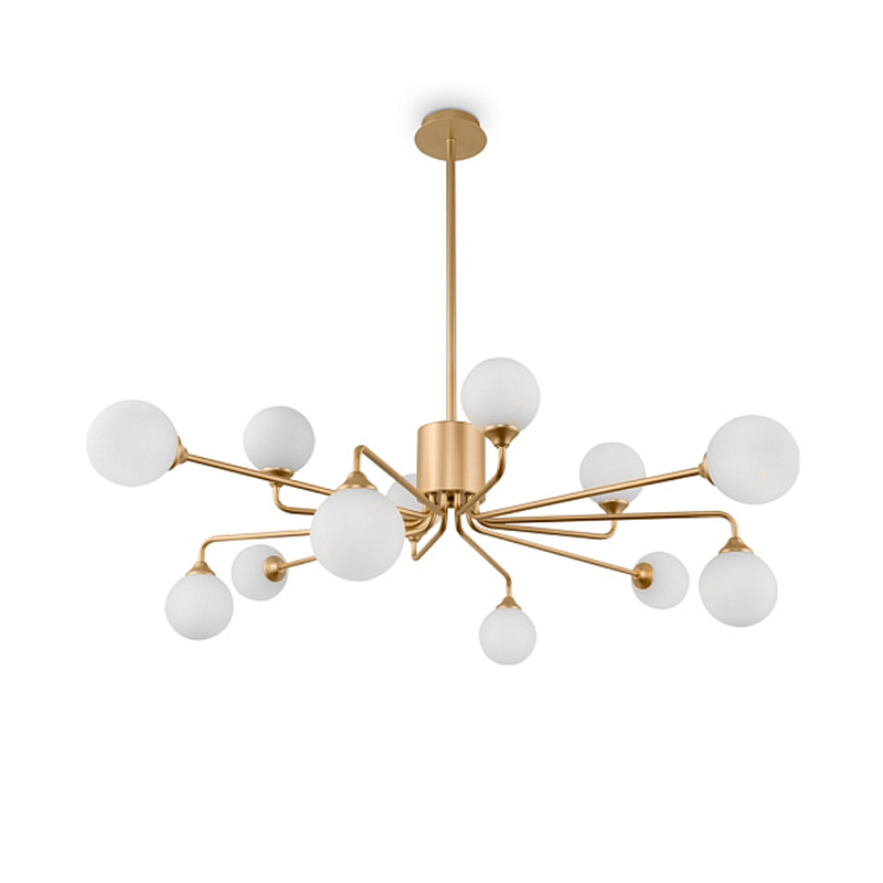 Запросить индивидуальное предложениеОригинальная композиция, объединяющая стеклянные плафоны-сферы и металлическую арматуру цвета латуни, актуальна для освещения современных интерьеров Благодаря большому ассортименту серии и наличию в ней люстр различного диаметра и высоты, каждый сможет выбрать светильник необходимых размеров. Разнообразие конструктивных решений также не оставляет равнодушным: ассиметричные светильники и модели с дугообразными рожками-лучами займут достойное место в любой обстановке. Люстры на 12, 9 и 6 плафонов позволяют подобрать оптимальную яркость и мощность подсветки, исходя из размеров помещения.