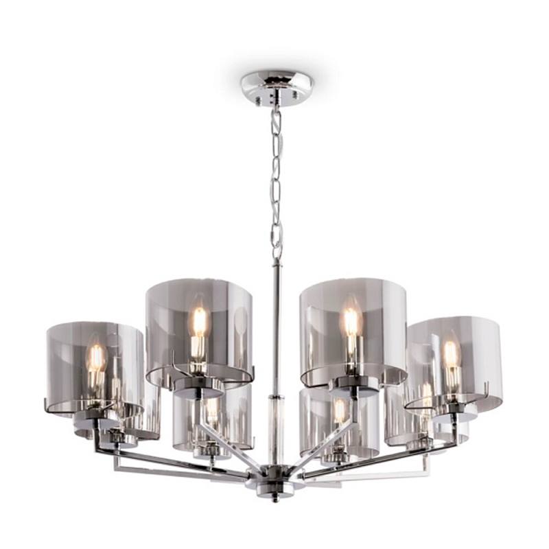 Запросить индивидуальное предложениеСерия Karen из хромированного метала и стекла выполнена в стиле минимализм. Стеклянные дымчатые плафоны дополнены гальваническим напылением, которое придает стеклу зеркальный эффект при выключенном освещении и делает его ярким и сияющим при включенном режиме. Плафоны имеют форму цилиндра и не закрыты сверху и снизу, что позволяет избежать скопления пыли. Плафоны крепятся на скобы, что позволяет быстро и легко их снимать и одевать. Высота люстры регулируется длиной цепи.