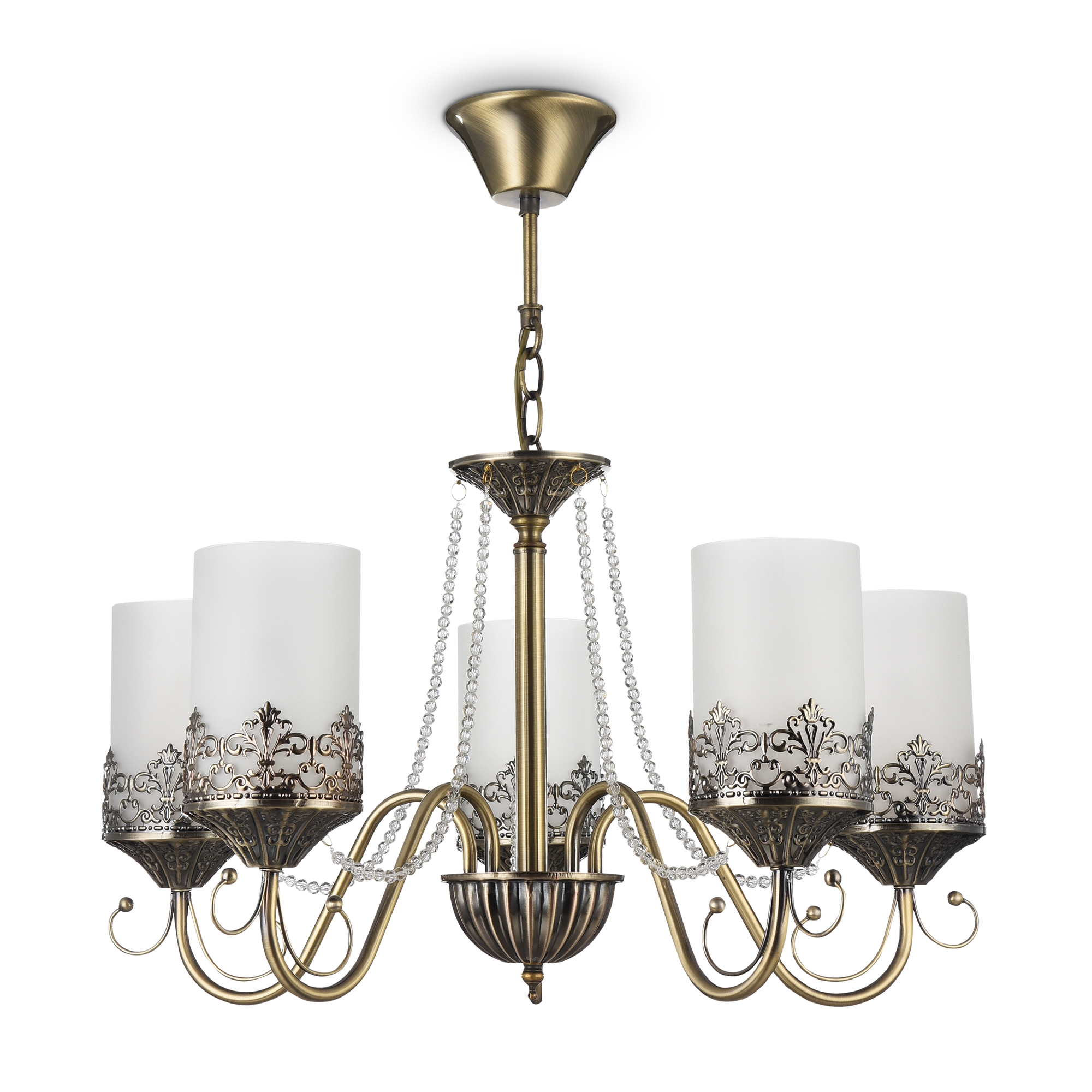 Запросить индивидуальное предложениеНарядные и элегантные светильники — прекрасное решение для интерьеров в классическом стиле. Металлическая арматура окрашена в бронзовый цвет, цилиндрические плафоны из матового стекла обрамлены резным узором из металла, который перекликается с орнаментом основания. Дополняют дизайн нити из кристаллов.