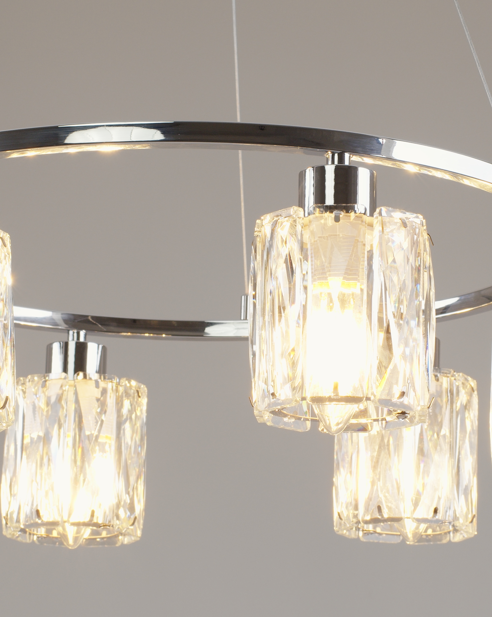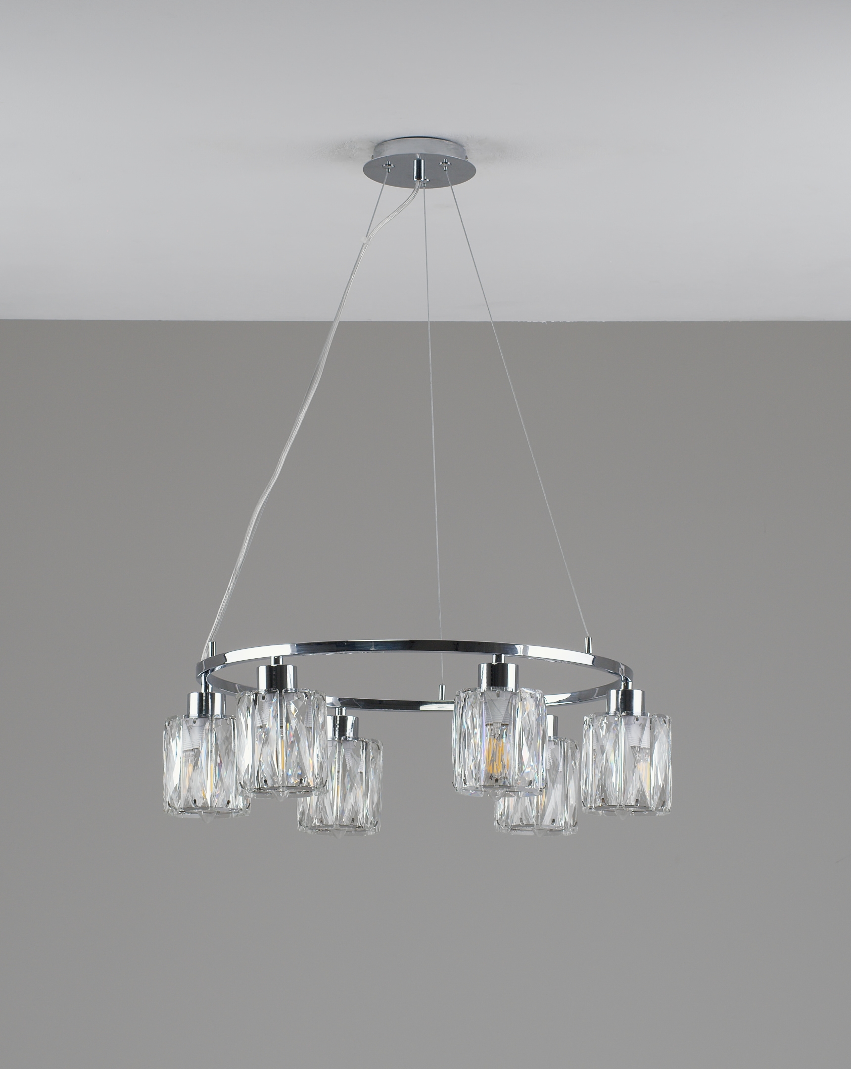 Люстра коллекции Prismique — это гармоничное сочетание симметрии, сияющего хрусталя и благородного металла. Аккуратные хрустальные плафоны в форме прямоугольников равномерно размещены по кругу, создавая эффект объемного и равномерного освещения.