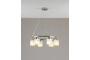 Шесть патронов E14 обеспечивают мощность до 240 Вт, что позволяет осветить помещение до 16 кв.м. Благодаря регулируемой подвесной системе (высота — от 120 до 180 см), люстра легко адаптируется под разную высоту потолков, включая натяжные.