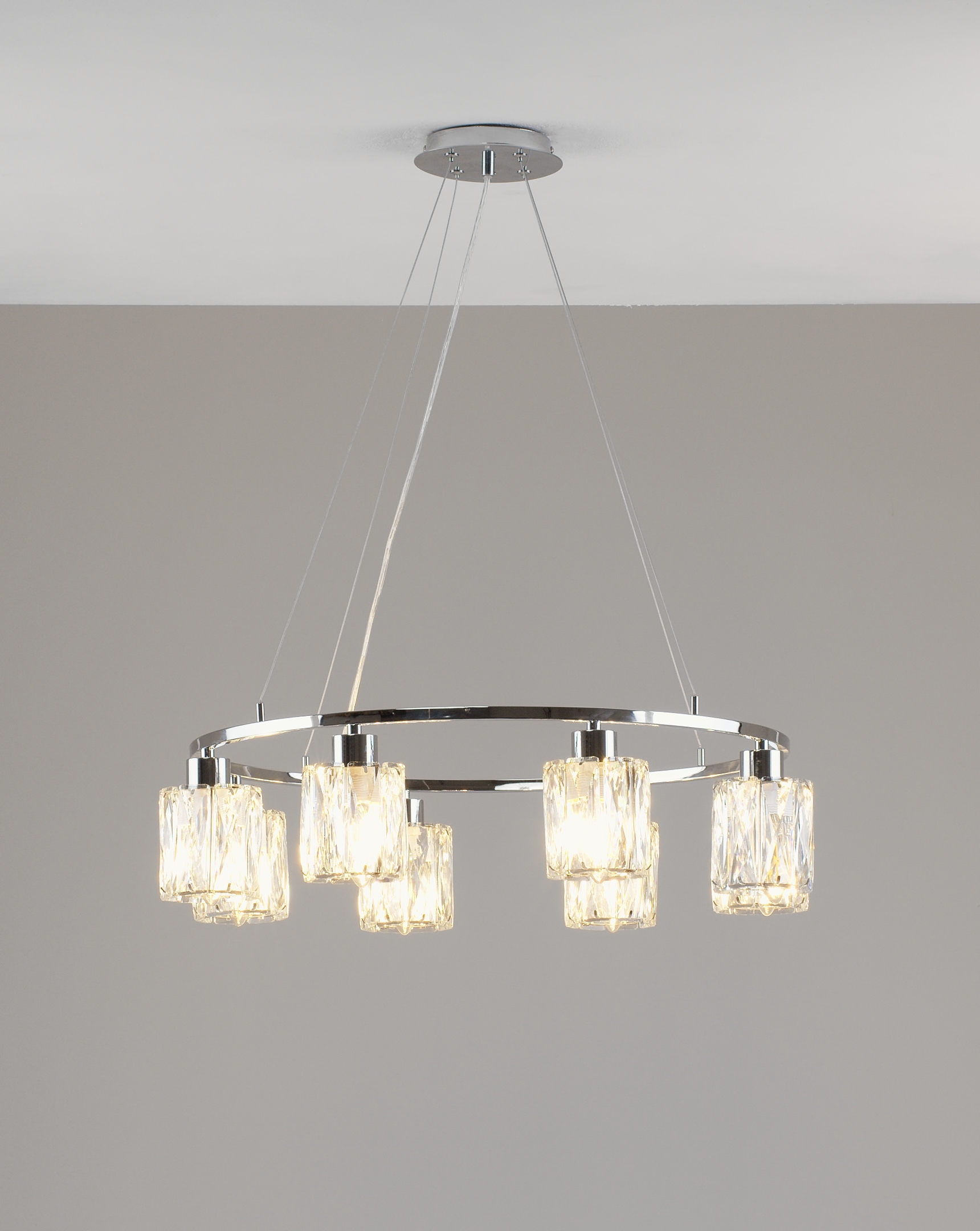 Люстра коллекции Prismique — это гармоничное сочетание симметрии, сияющего хрусталя и благородного металла. Аккуратные хрустальные плафоны в форме прямоугольников равномерно размещены по кругу, создавая эффект объемного и равномерного освещения.