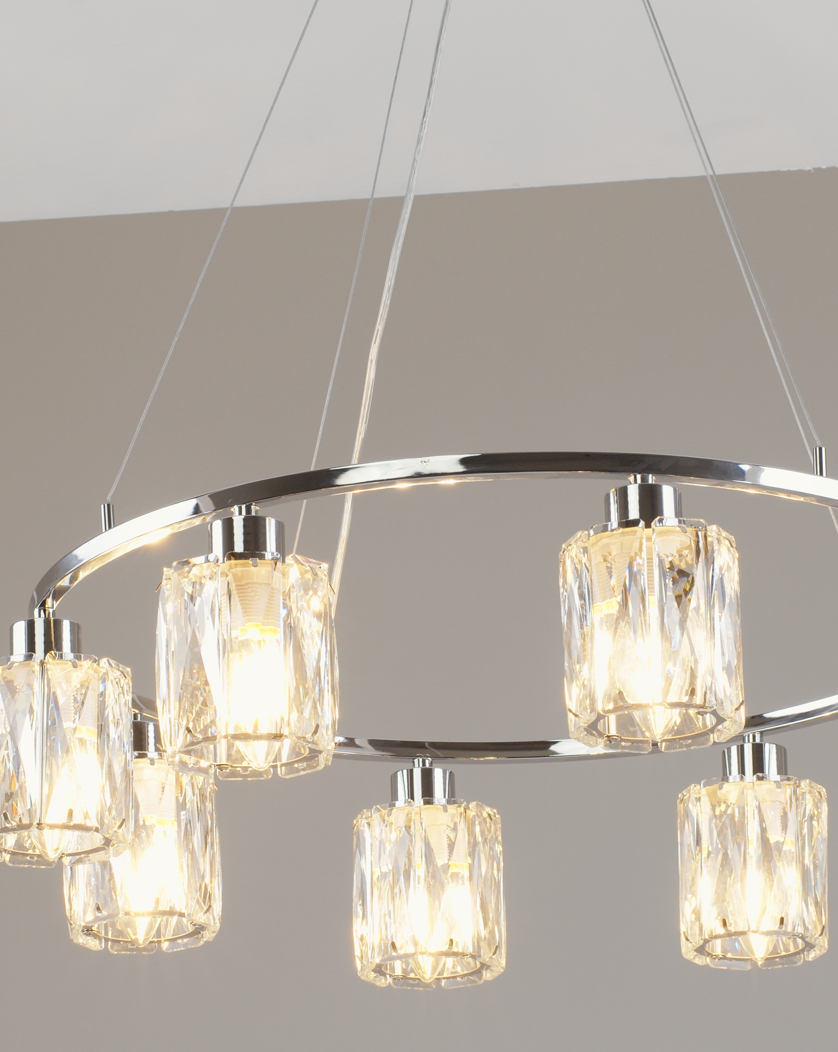 Эта модель станет выразительным элементом интерьера в обеденной зоне, гостиной, спальне или ресторан с акцентом на премиальные материалы и световую атмосферу. Хрустальные элементы красиво рассыпают свет, создавая ощущение уюта и торжественности.