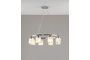 Восемь патронов E14 обеспечивают мощность до 320 Вт, что позволяет осветить помещение до 18 кв.м. Благодаря регулируемой подвесной системе (высота — от 120 до 180 см), люстра легко адаптируется под разную высоту потолков, включая натяжные.