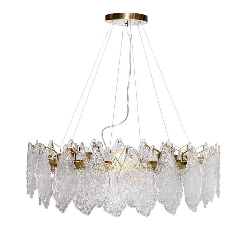 Запросить индивидуальное предложениеПодвесная стеклянная люстра – классика современного интерьера, ключевой декоративный элемент, который задает тон всей обстановке. Изюминка потолочного светильника – легкие прозрачные лепестки из рифленого стекла, которые обрамляют круглое металлическое основание. За счет такого дизайна свет от лампочек рассеивается и создает приятную атмосферу в комнате. Дизайнерская люстра в гостиную выполняет одновременно практическую и эстетичную функции, украшает пространство и добавляет ему изящества. Качество материалов и изготовления отвечает высоким стандартам. Рекомендуемая площадь освещения 20-24 м2.
