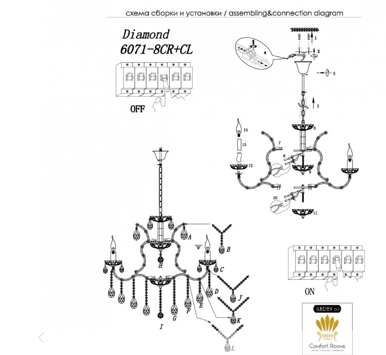 Светильник подвесной iLamp Diamond 6071-8 CR+CL