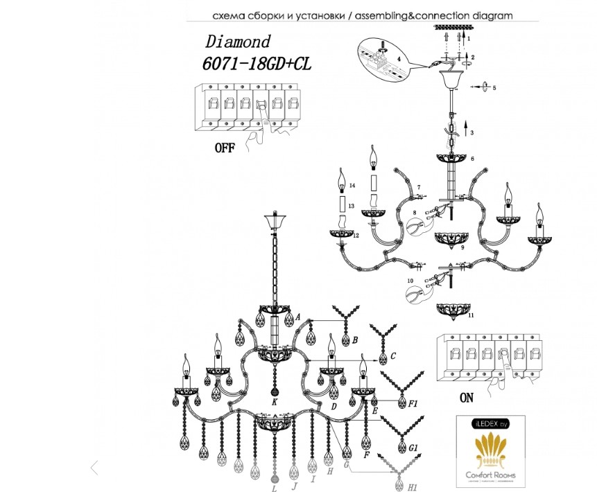 Светильник подвесной iLamp Diamond 6071-18 GD+CL