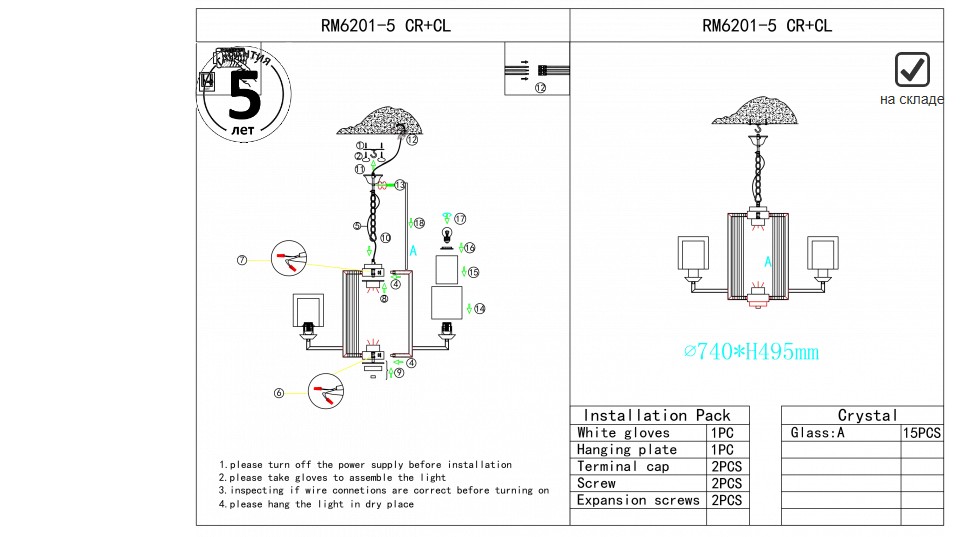 Светильник подвесной iLamp King RM6201-5 CR+CL