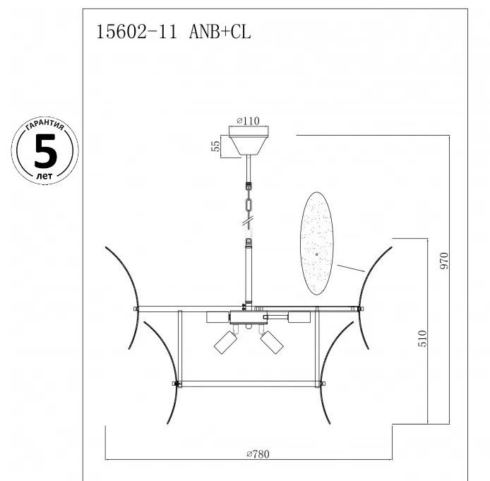 Светильник подвесной iLamp Gramercy 15602-11 ANB+CL