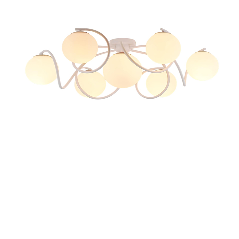 Запросить индивидуальное предложениеСовременная потолочная люстра в лаконичном исполнении из коллекции Circle в стиле модерн. Плафоны в виде шаров выполнены из светлого матового стекла и соединены в единую композицию изогнутыми металлическими трубочками. Такая люстра прекрасно дополнит интерьер спальни, холла или комнаты отдыха.