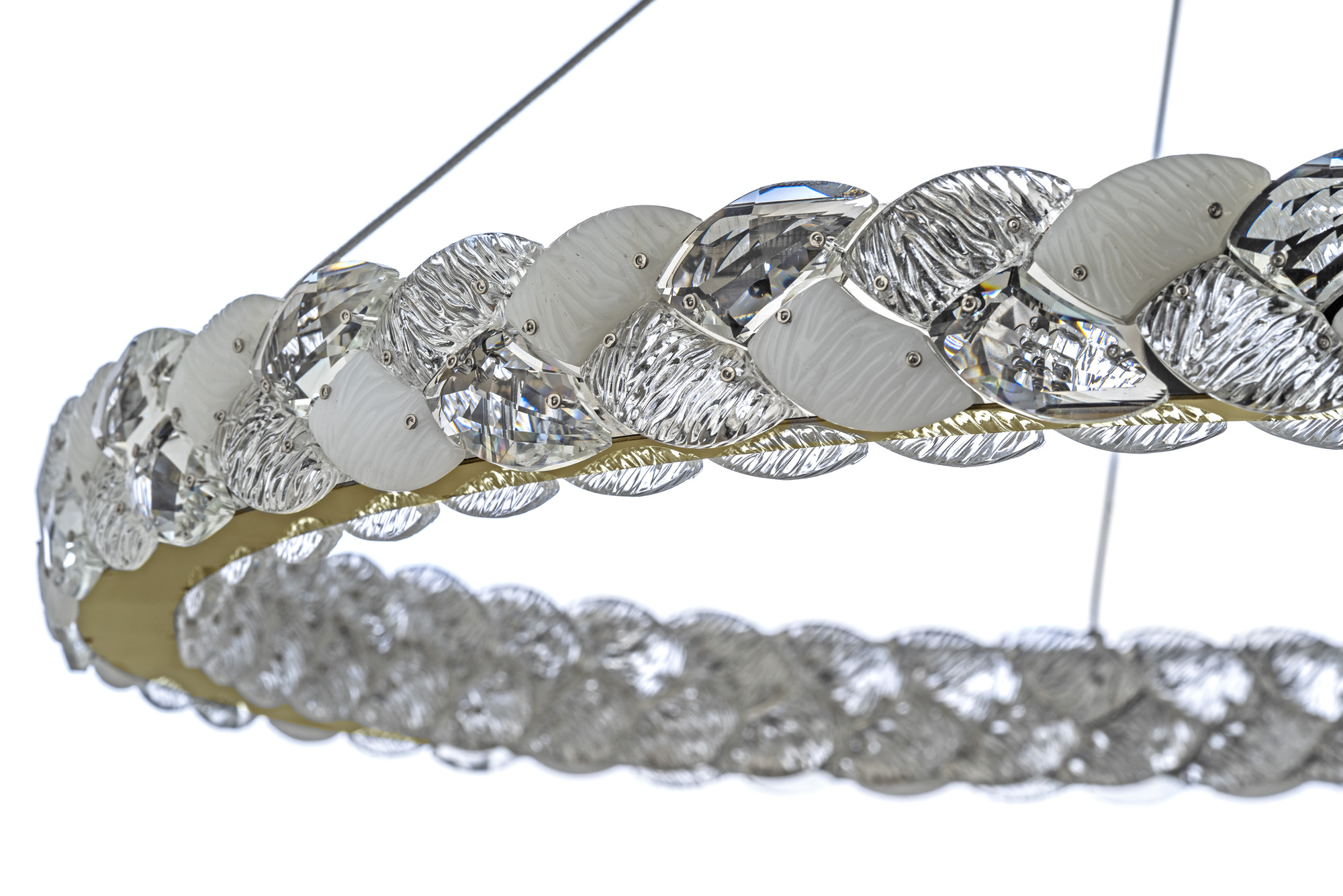 * Цветовая гамма: Преобладают золотые и прозрачные оттенки, что придает люстре изысканный и роскошный вид.