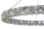 * Декор: Особенностью люстры является ее обильное украшение хрусталем, имитирующими чешую или листья. Хрусталь имеют многогранную огранку, которая преломляет свет, создавая блики и сияние. Между хрусталем расположены матовый белый хрусталь, создающие контраст и смягчающие общий вид.