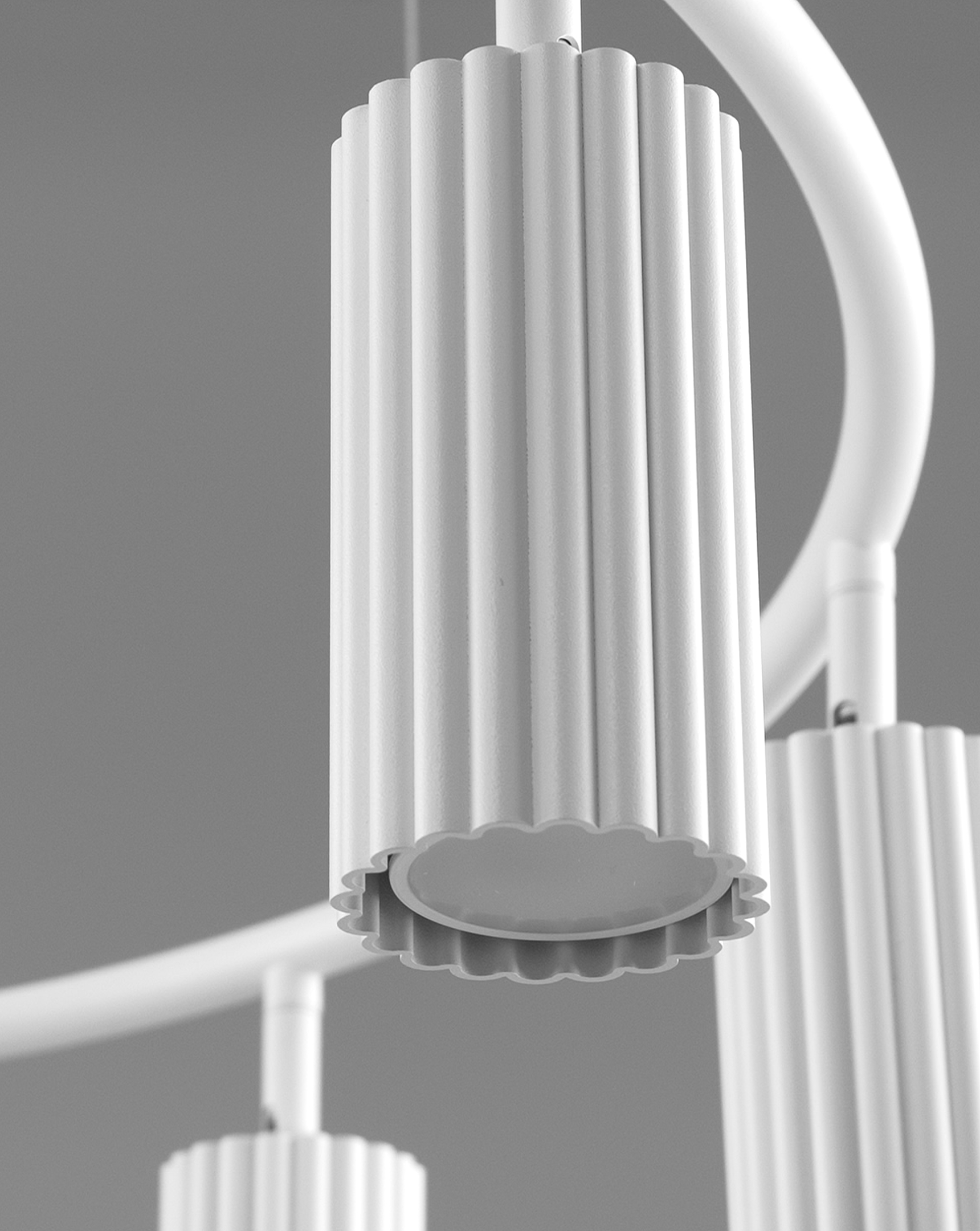 Люстра Cora выполнена из прочного металла, который обеспечивает надежность и долговечность конструкции. Плафоны цилиндрической формы и матовое покрытие корпуса придают светильнику современный и элегантный вид, идеально вписывающийся в стиль лофт.