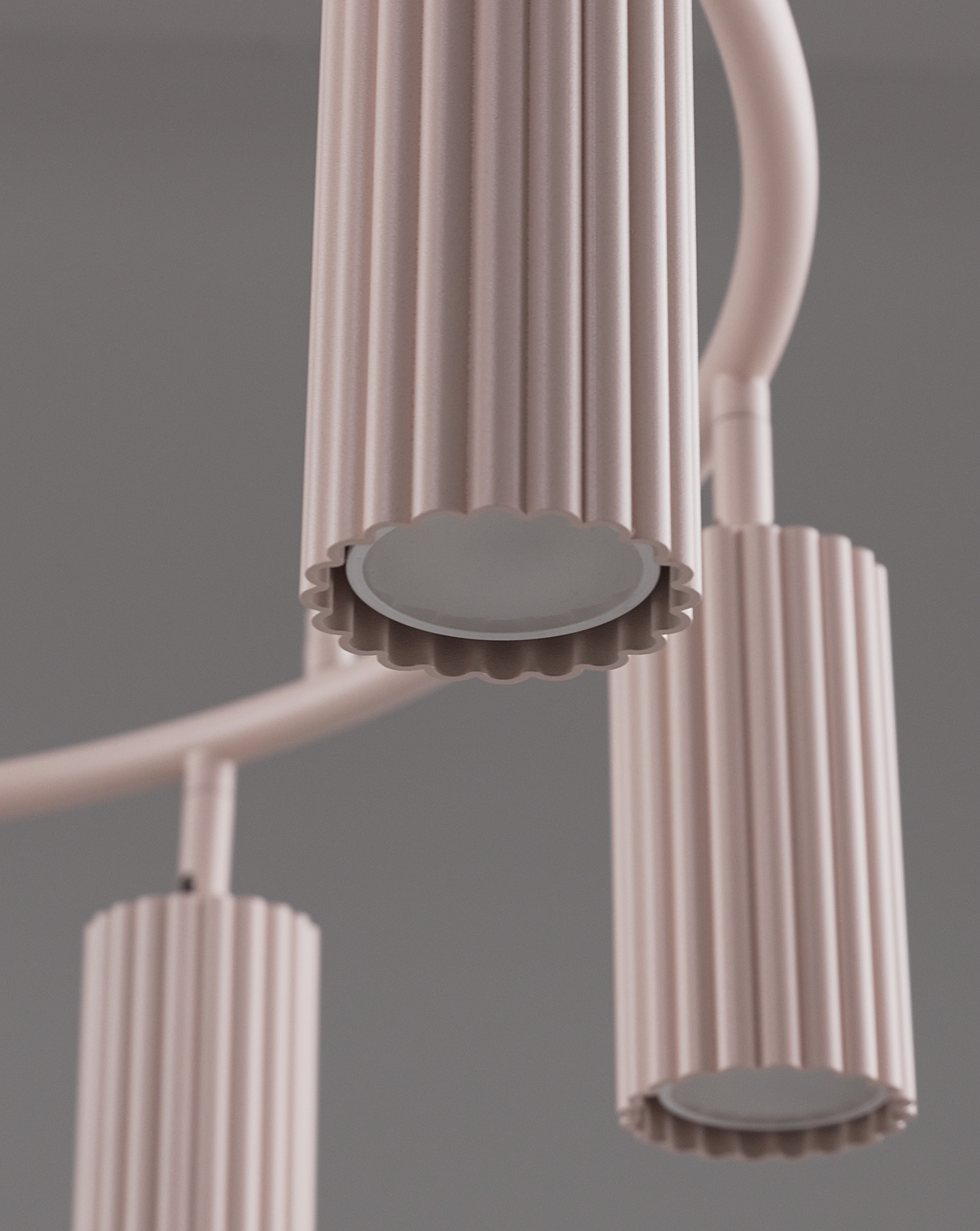 Люстра Cora выполнена из прочного металла, который обеспечивает надежность и долговечность конструкции. Плафоны цилиндрической формы и матовое покрытие корпуса придают светильнику современный и элегантный вид, идеально вписывающийся в стиль лофт.