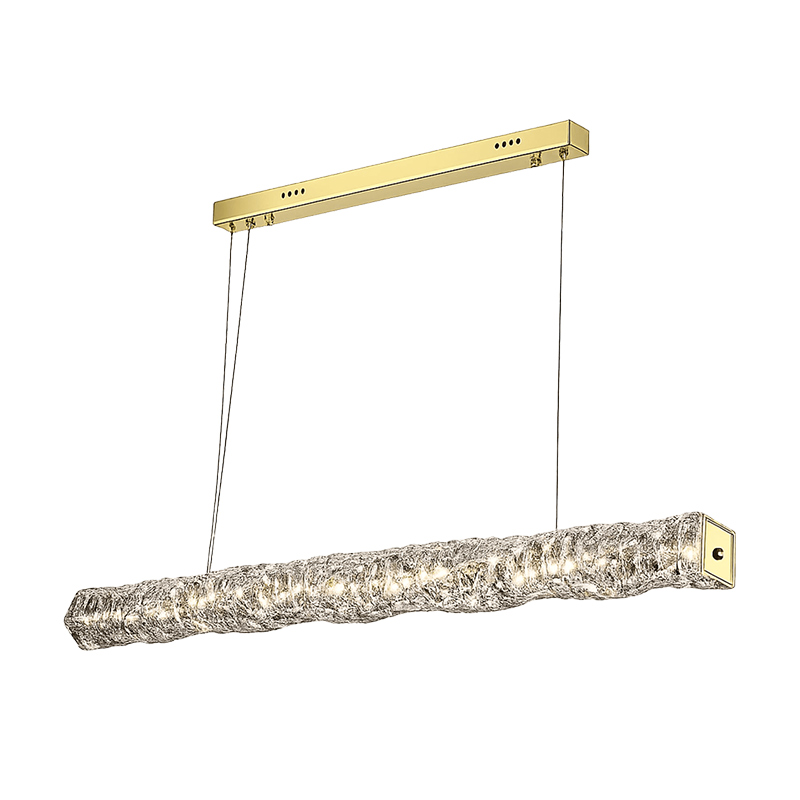 Такой тип светильников также называют «линейный кристаллический подвес» или «современная кристаллическая люстра-планка»