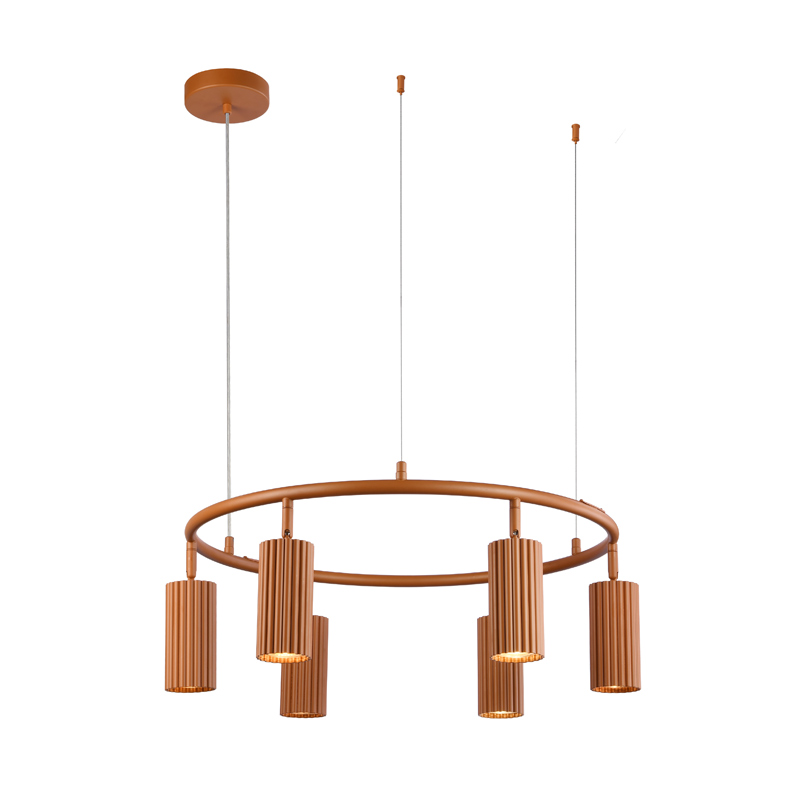 Люстра изготовлена из высококачественного металла, что обеспечивает ей прочность и долговечность. Матовый терракотовый цвет корпуса и плафонов придаёт светильнику стильный и минималистичный вид, который гармонично смотрится в различных помещениях.