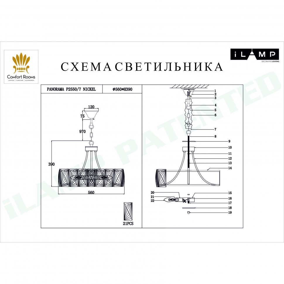 Подвесная люстра iLamp Panorama P2550-7 Nickel
