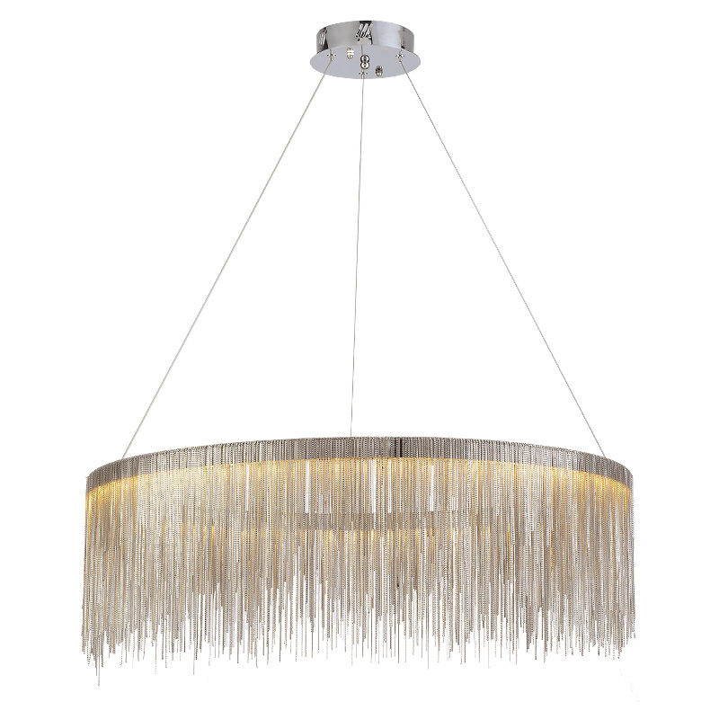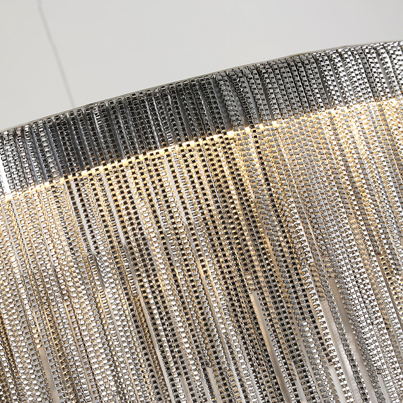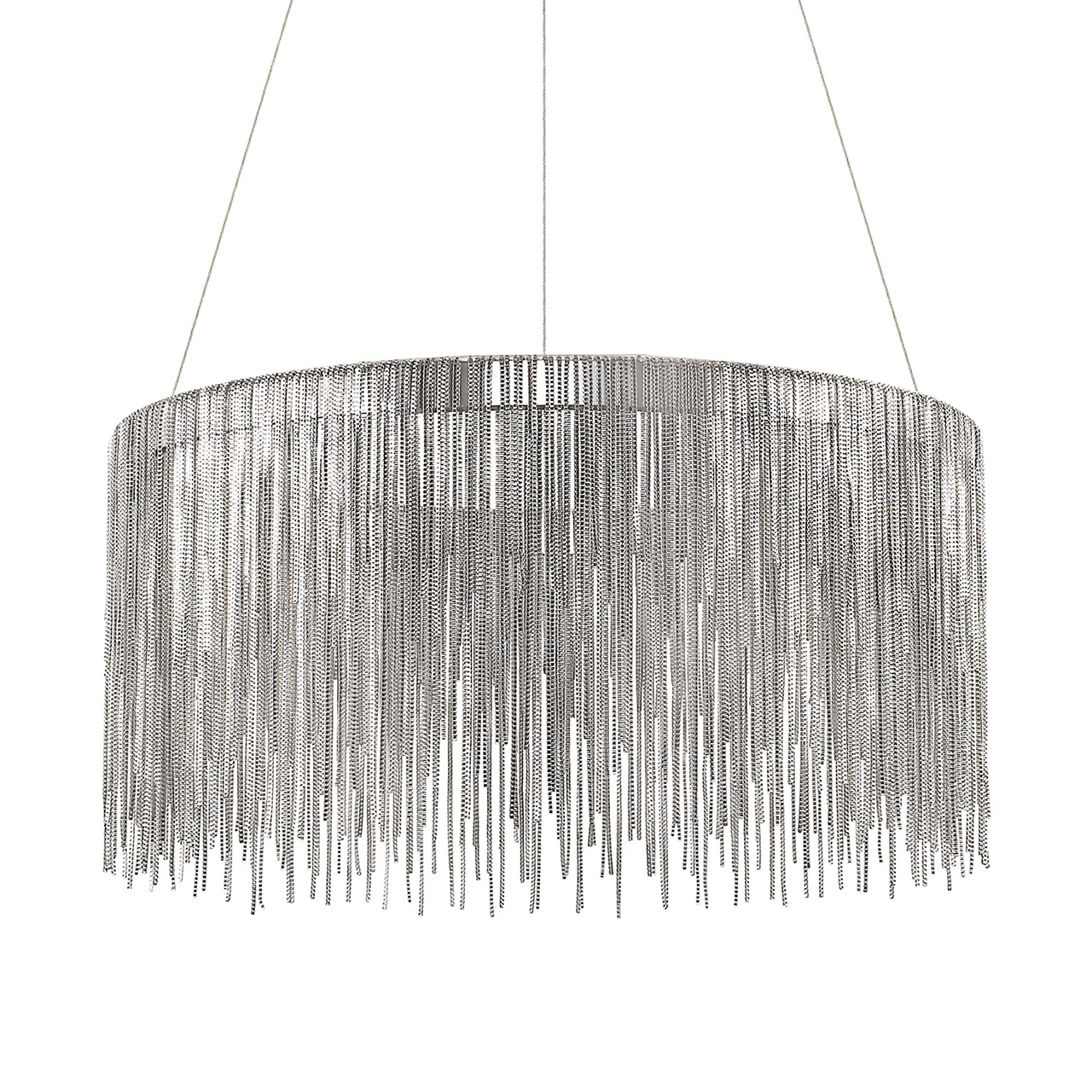 Запросить индивидуальное предложениеЛюстра Versus сплошь состоит из цепочек. Это великолепное изделие - результат ручной работы. Встроенная по кругу светодиодная лента мягко подсвечивает свисающие цепочки.