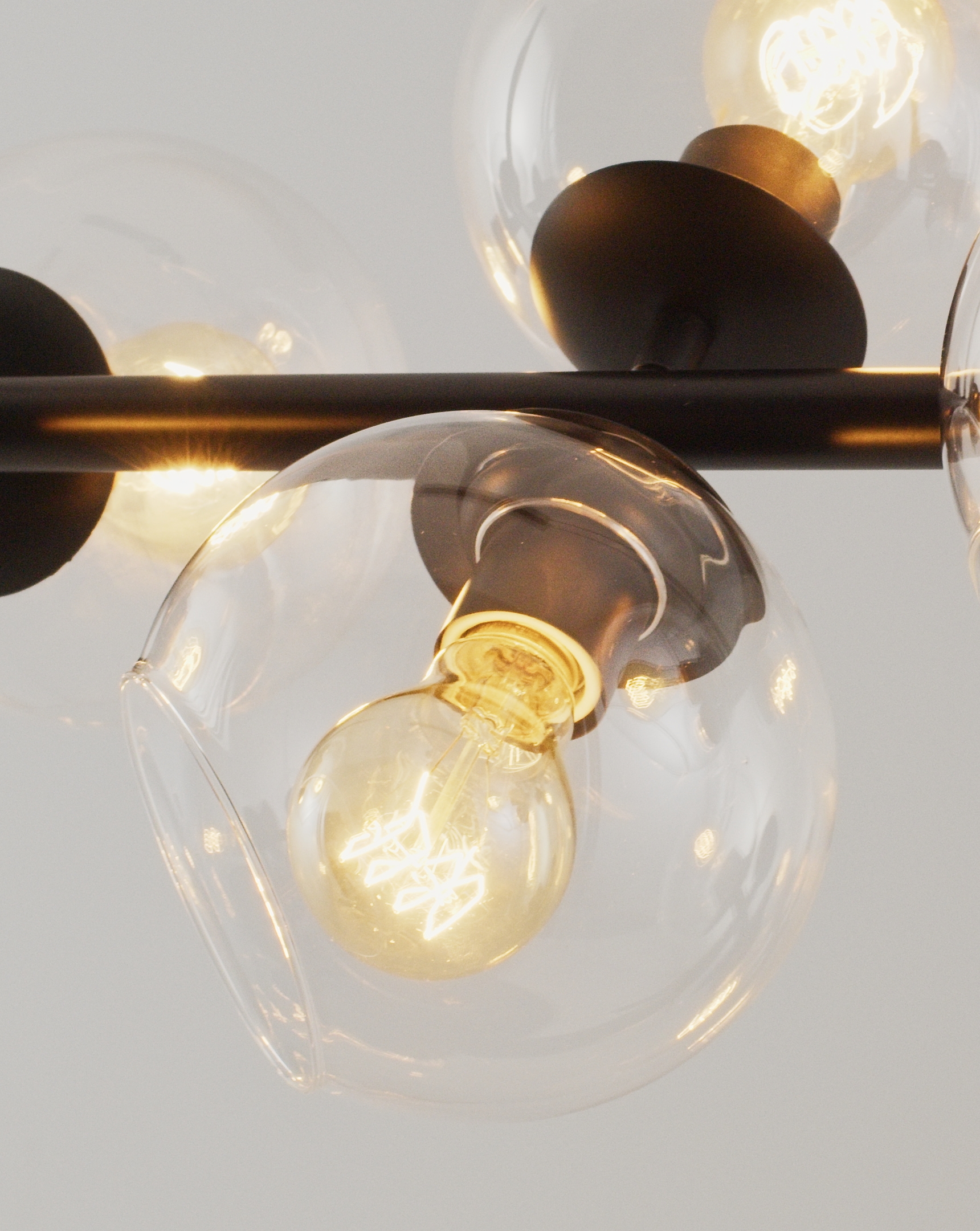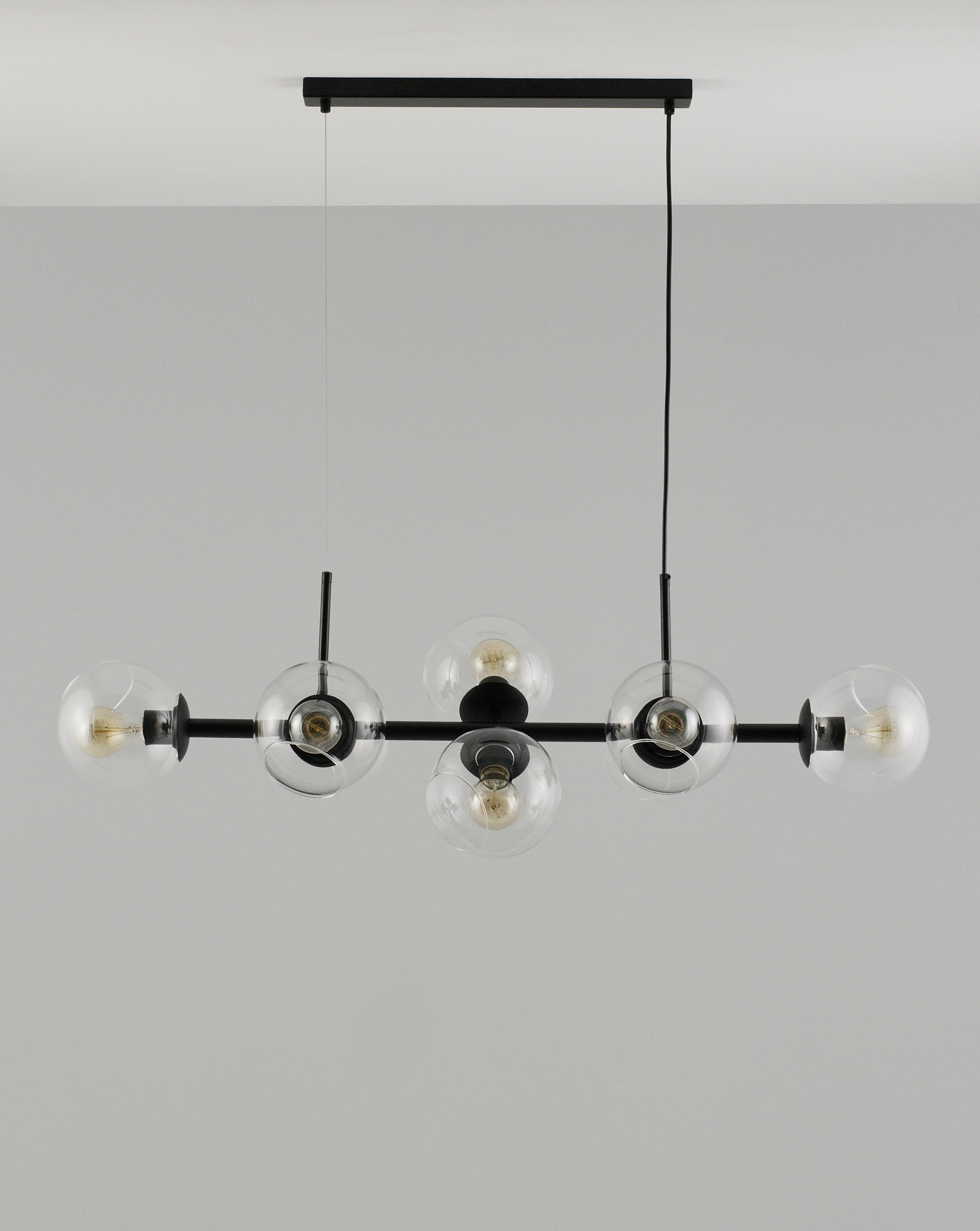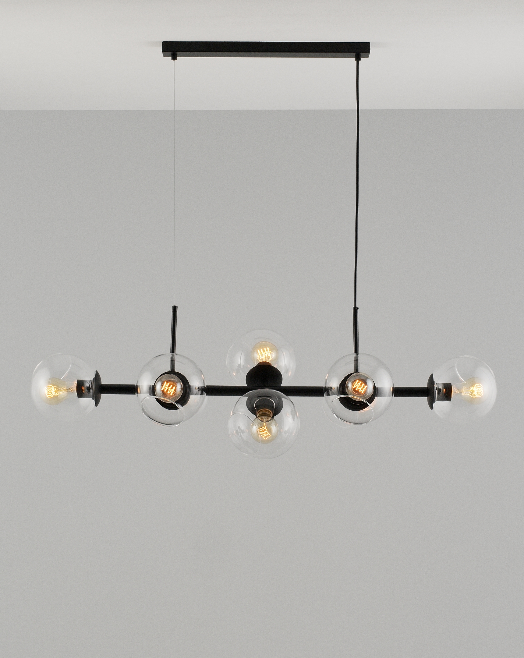 Запросить индивидуальное предложениеСовременная подвесная люстра Long в стиле лофт. Плафоны из прозрачного стекла способствуют созданию яркого освещения и дополняют светильник воздушным дизайном. Металлический каркас надежно крепится к потолку с помощью планки и удерживается благодаря нескольким тросам. Люстру можно регулировать по высоте. В качестве источника света подойдут лампы накаливания или LED с цоколем Е27. Подвесная люстра Long станет прекрасным дополнением в любом современном интерьере. Подойдёт для освещения кухни, зала, гостиной и обеденной зоны.