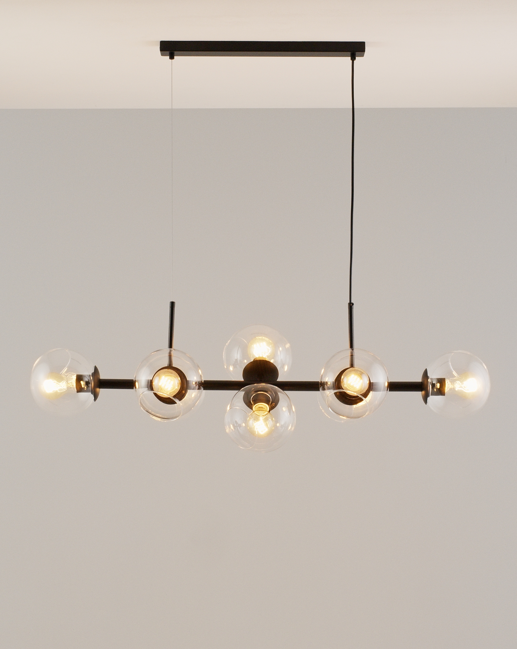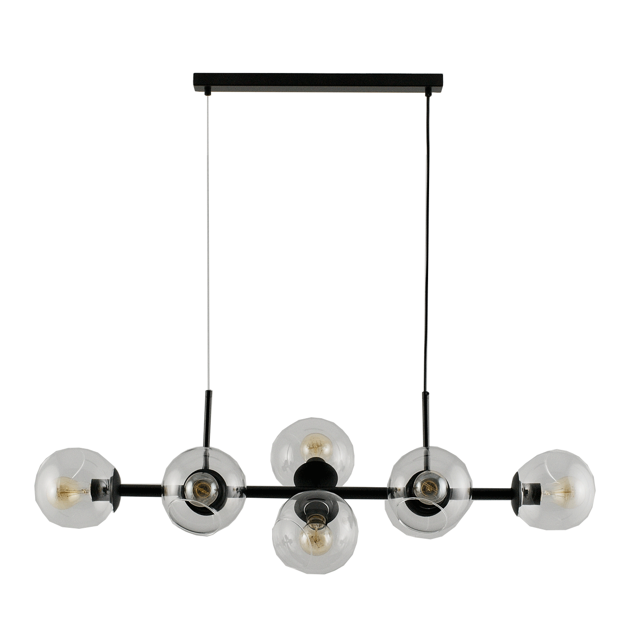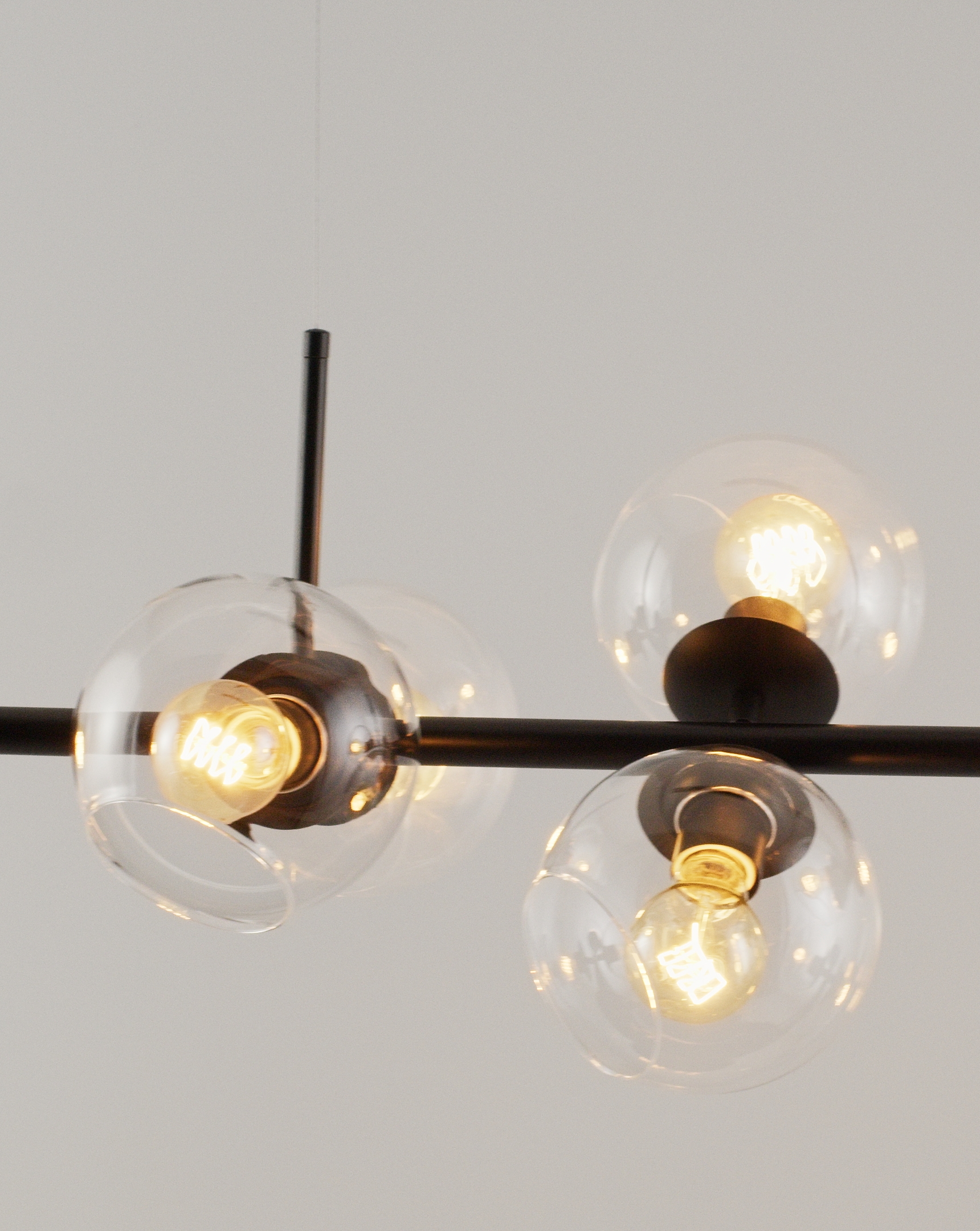 Запросить индивидуальное предложениеСовременная подвесная люстра Long в стиле лофт. Плафоны из прозрачного стекла способствуют созданию яркого освещения и дополняют светильник воздушным дизайном. Металлический каркас надежно крепится к потолку с помощью планки и удерживается благодаря нескольким тросам. Люстру можно регулировать по высоте. В качестве источника света подойдут лампы накаливания или LED с цоколем Е27. Подвесная люстра Long станет прекрасным дополнением в любом современном интерьере. Подойдёт для освещения кухни, зала, гостиной и обеденной зоны.