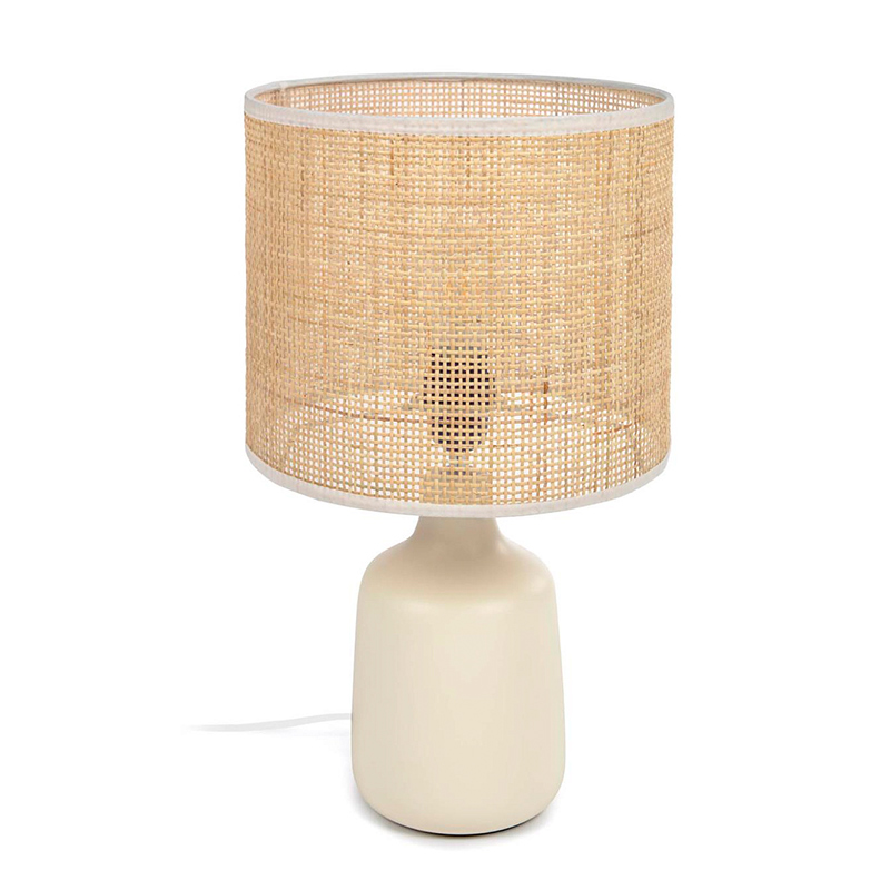 Настольная лампа Erna из белой керамики и бамбука с натуральной отделкой