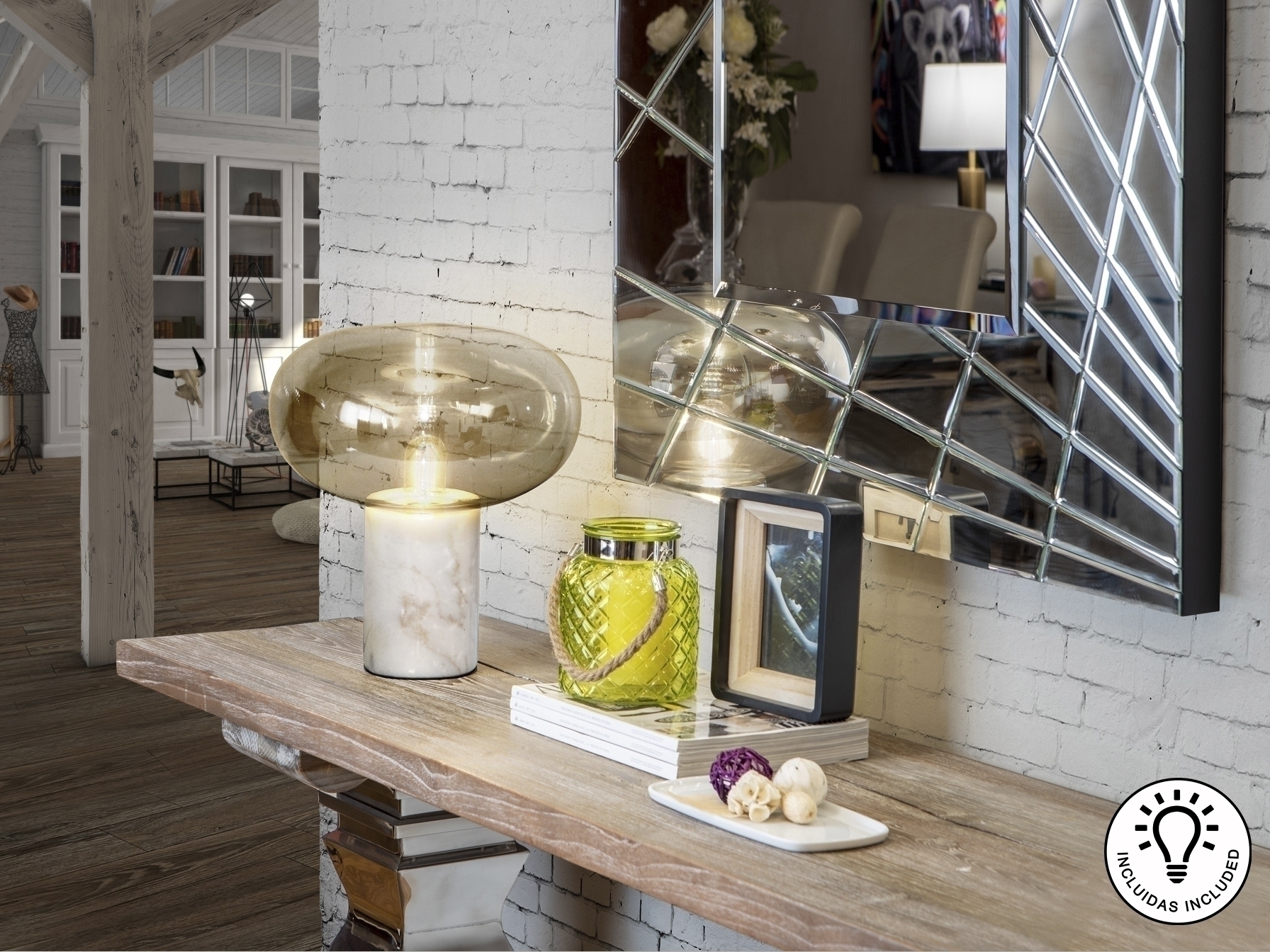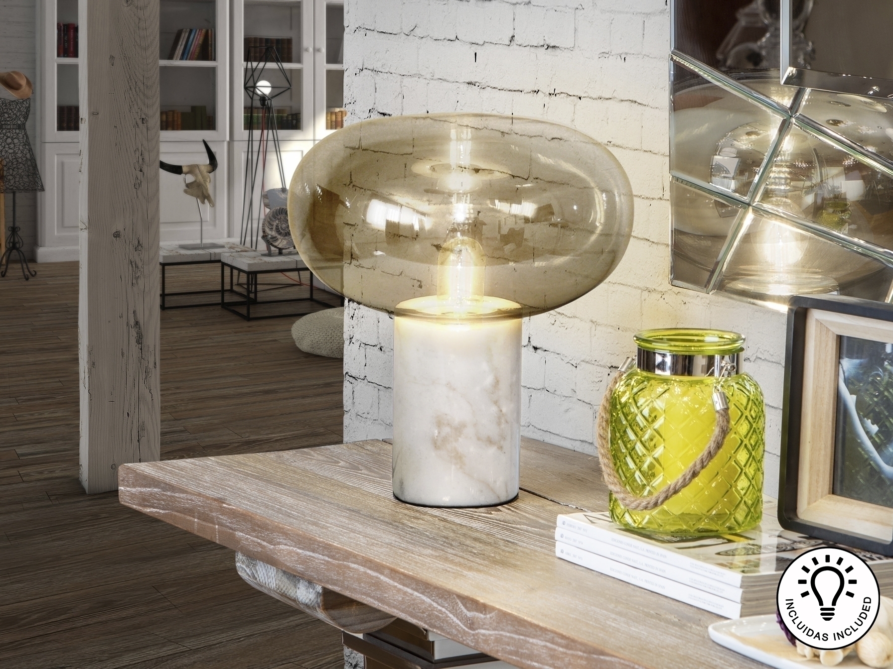 Настольная лампа Fungi 1L белый мрамор