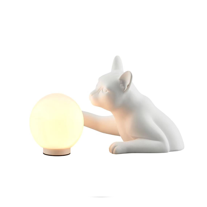 Оригинальная настольная лампа в виде белой кошки, аккуратно придерживающей светящийся шар, сразу притягивает взгляд. Это не просто осветительный прибор — это декоративный акцент, который оживит интерьер и добавит в него уюта.