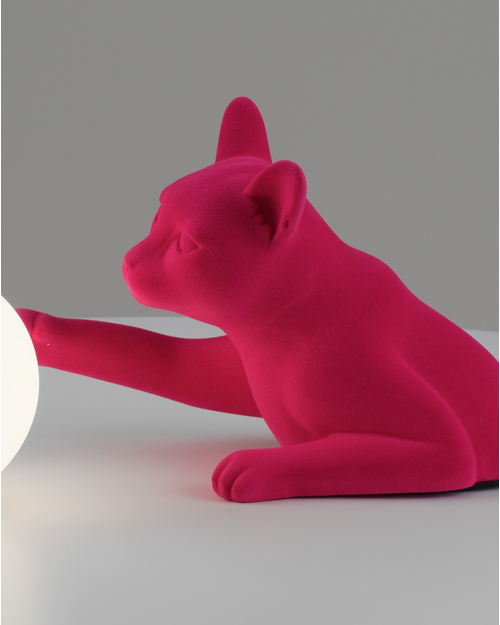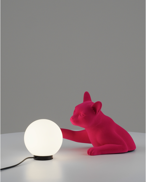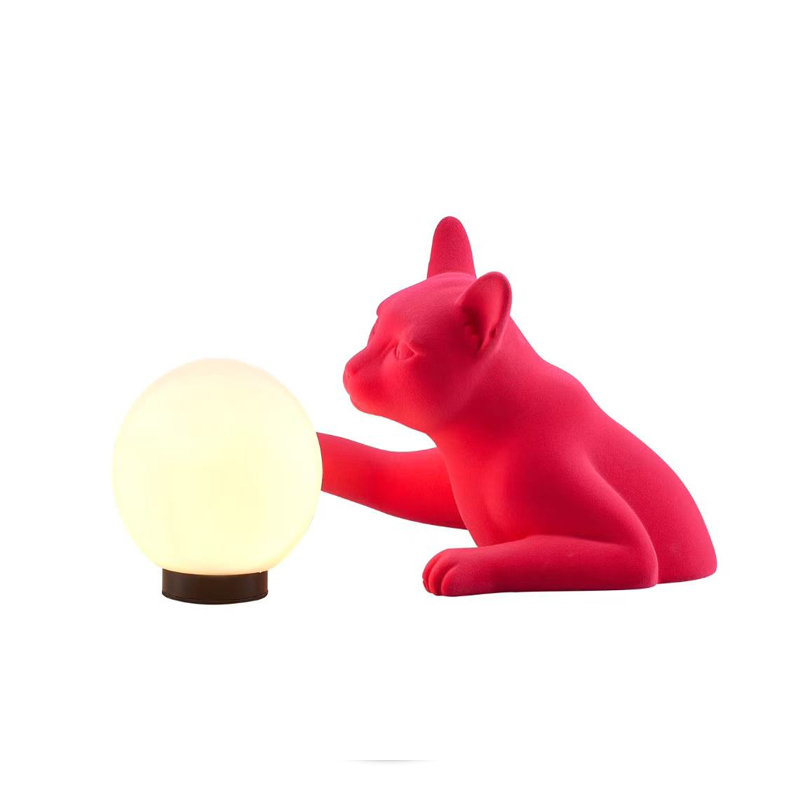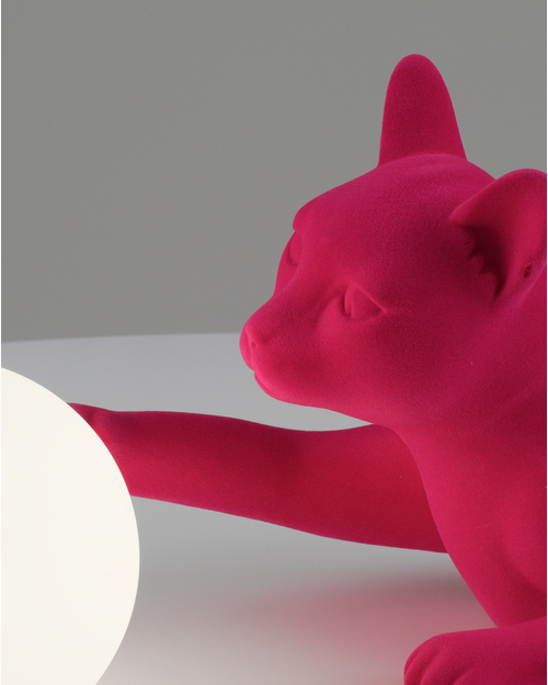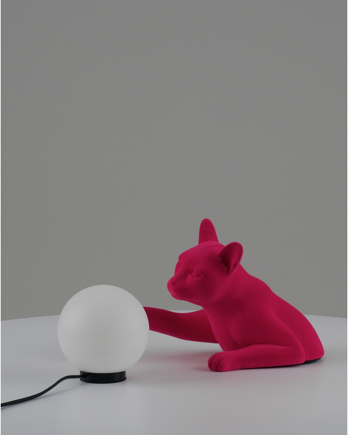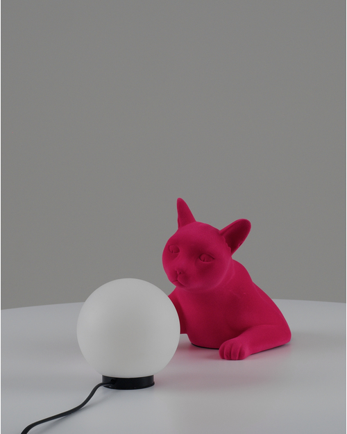 Корпус выполнен из прочных и долговечных материалов с приятной тактильной поверхностью. Силуэт кошки сочетается с плафоном в виде шара, создавая сбалансированный контраст и мягкое освещение.