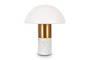 Запросить индивидуальное предложениеМатериал арматуры — метал, цвет — латунь. Основание - белый мрамор с серым рисунком. Плафон из глянцевого стекла в форме полушара. Источник света — лампа с цоколем E14