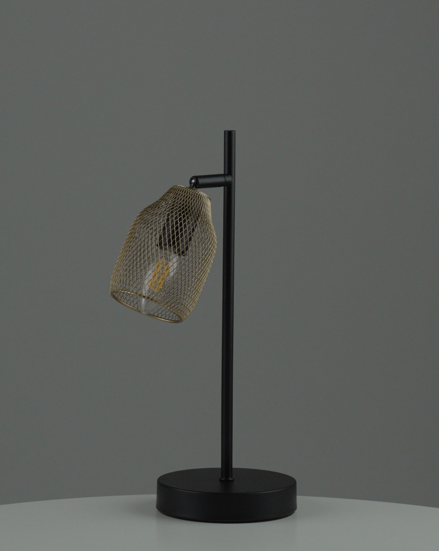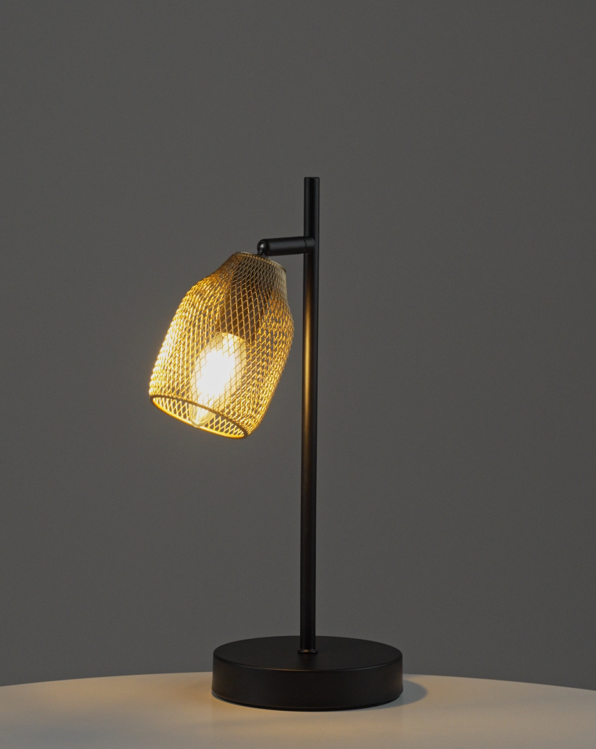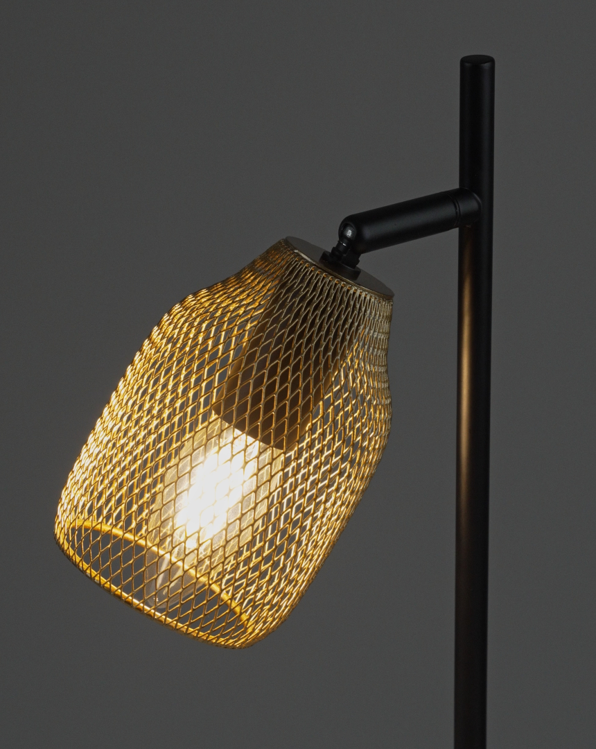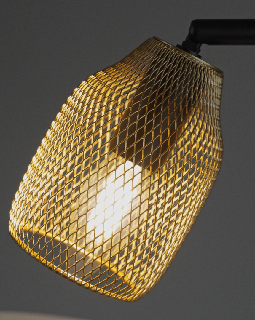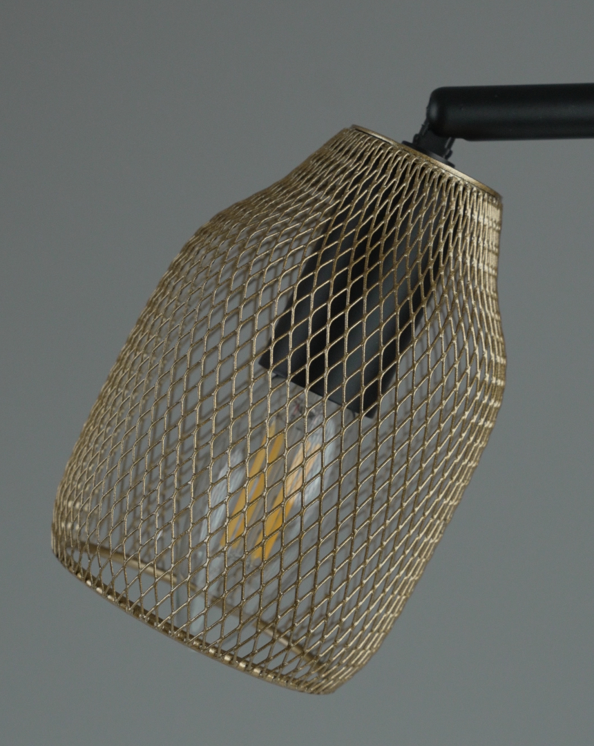 Лампа выполнена в минималистичном и в то же время выразительном стиле. Плафон в форме вытянутой капли из черной металлической сетки создаёт мягкое рассеянное освещение и придаёт интерьеру индустриальное очарование.