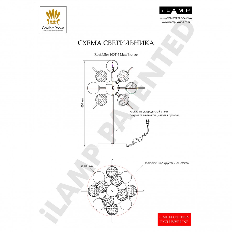 Настольная лампа iLamp Rockfeller 100T-5 Matt Bronze 100T-5 MBR