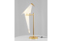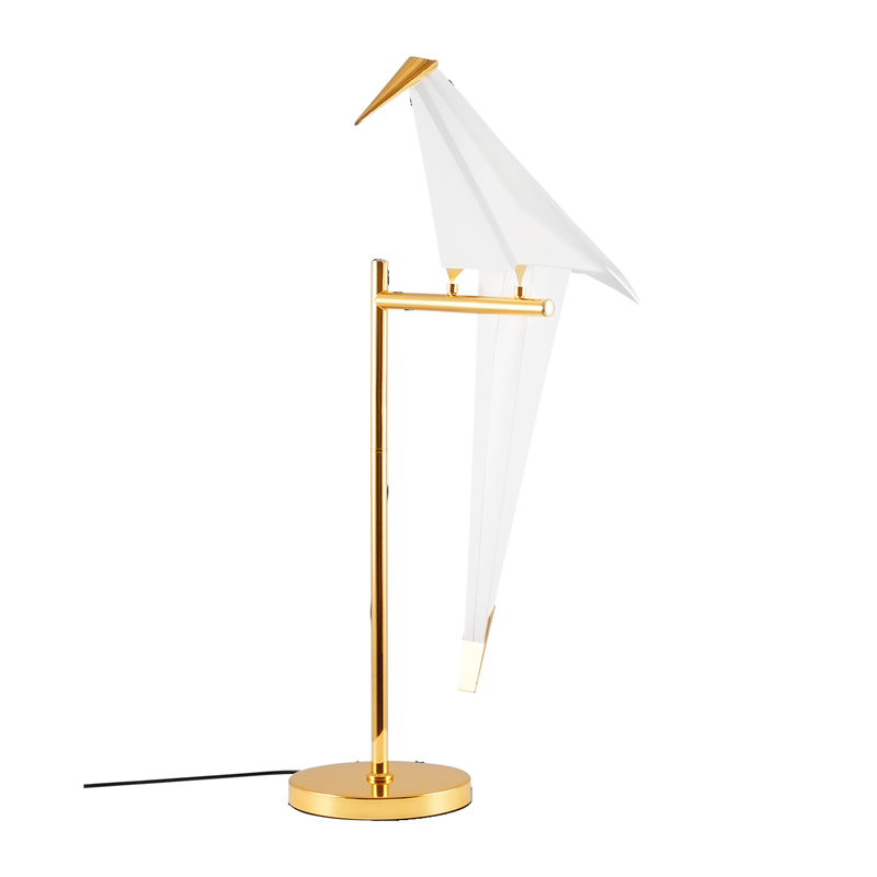Ее дизайн имитирует фигуру птицы, сидящей на золотистой перекладине. Плафон в форме птицы изготовлен из белого полирезина, создавая мягкое и приятное освещение. Голова и кончик хвоста украшены золотыми металлическими элементами. Лампа оснащена встроенным светодиодным источником света мощностью 6 Вт, обеспечивающим комфортное дневное освещение.