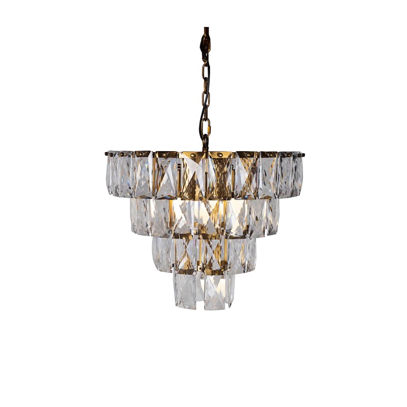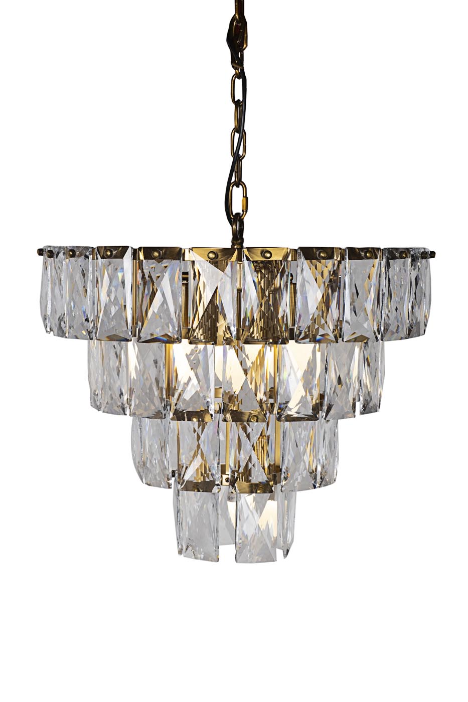 Запросить индивидуальное предложениеУют современного интерьера напрямую зависит от освещения в помещении. Золотая люстра с кристаллами однозначно произведет на хозяев и гостей впечатление. Изделие состоит из четырех ярусов, которые лаконично убывают в диаметре к низу. Каждый ярус выполнен из отдельных стеклянных кристаллов, которые крепятся на металлический обод латунного цвета. Оригинальный и неповторимый дизайн данной люстры станет беспроигрышным вариантом для завершения интерьера спальни, гостиной или холла. Создавайте свой неповторимый интерьер вместе с Garda Decor. Рекомендуемая площадь освещения 14-18 м2.