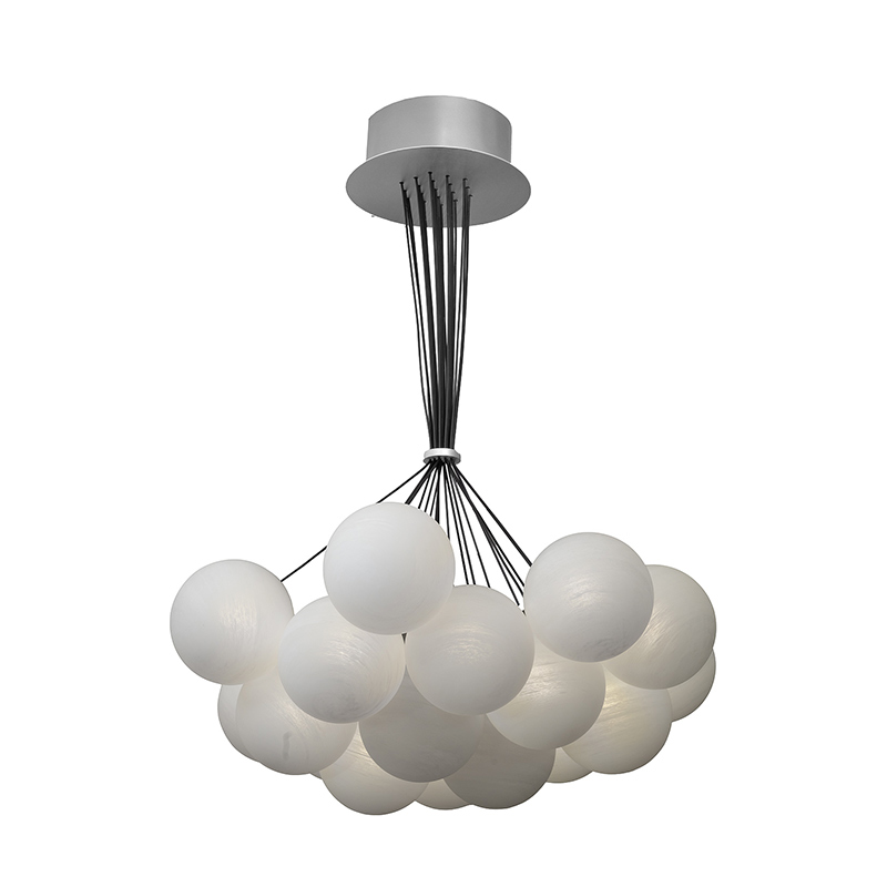 Запросить индивидуальное предложениеДизайнерский подвесной светильник GLOBO – это не только источник света, но и изысканный элемент декора. Прекрасный выбор для любителей эксклюзивных вещей, которые играют на равных с остальными предметами обстановки. Стеклянный потолочный светильник добавит роскоши интерьеру и отлично справится с ролью декоративного элемента. Плафоны из матового стекла в виде воздушных шаров смотрятся необычно и стильно, а каркас из алюминия дополняет общую стилистику. С помощью такой красивой люстры можно добавить в интерьер стильный акцент и сделать обстановку более индивидуальной. Рекомендуемая площадь освещения 9-12 м2