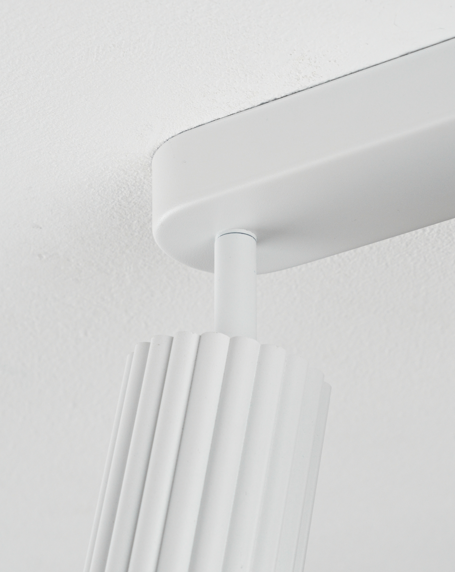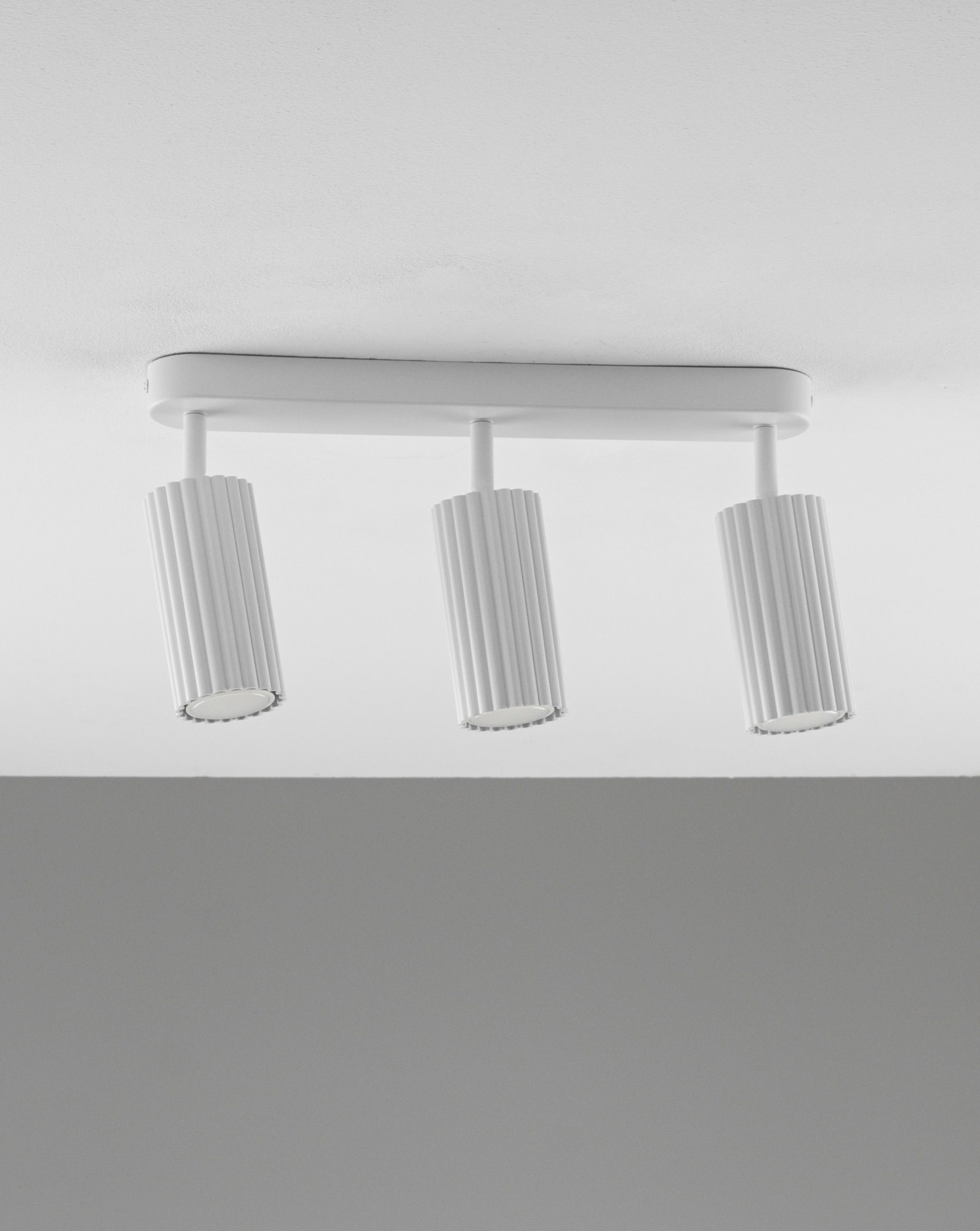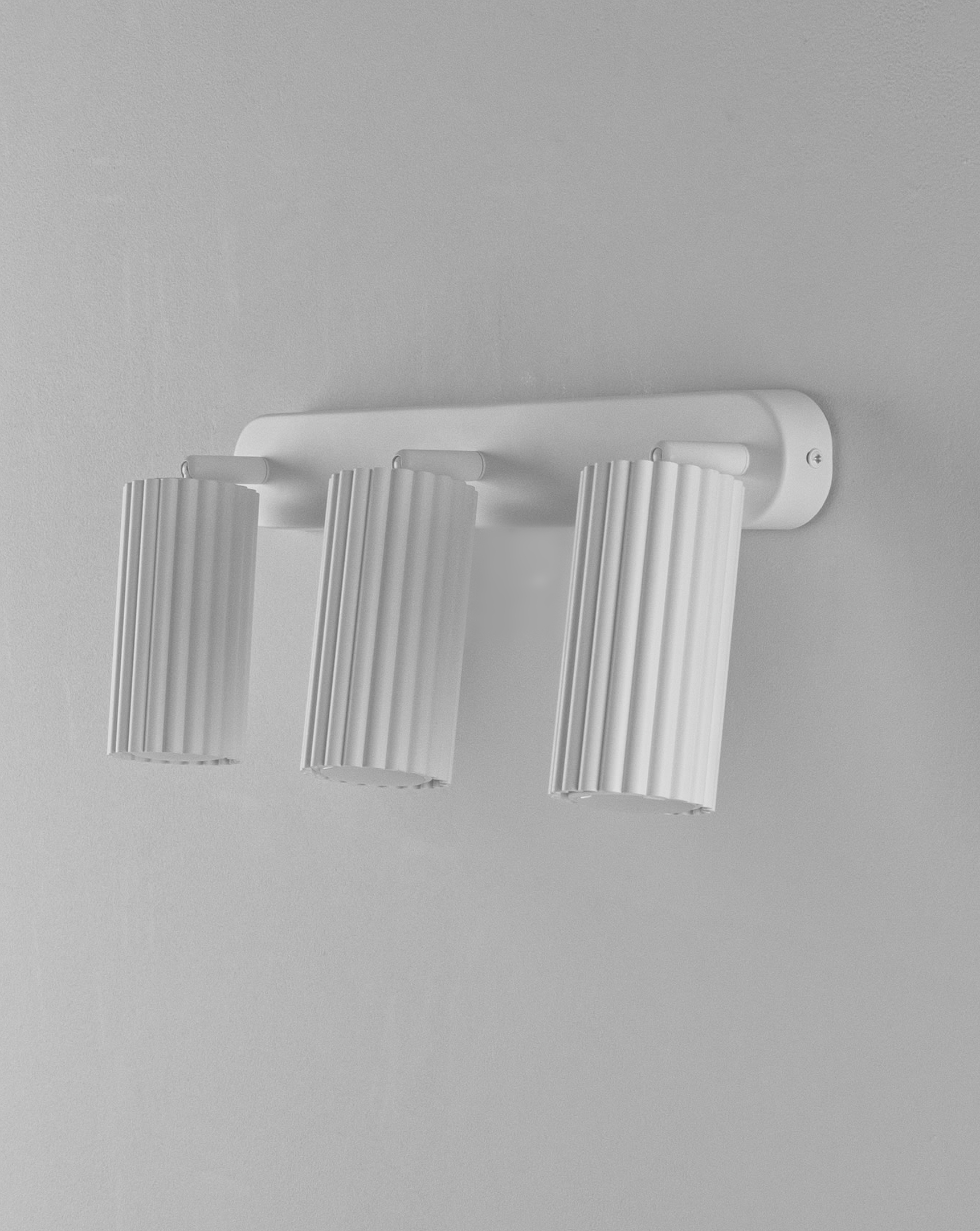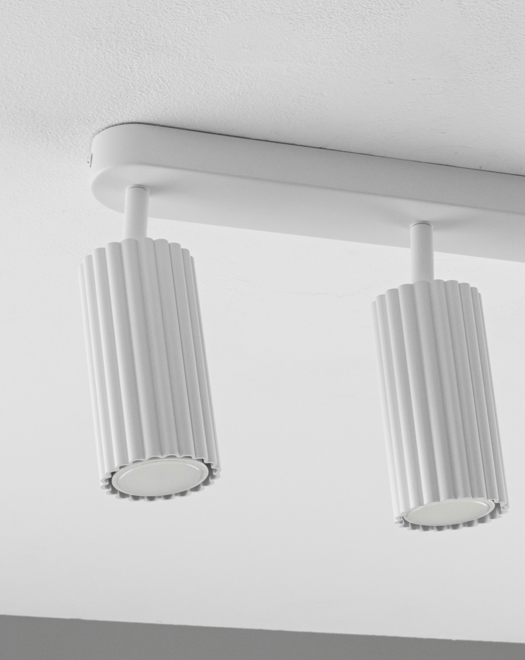 Спот Cora выполнен в минималистичном и функциональном стиле с элементами лофта. Белые цилиндрические плафоны с матовой текстурой и вертикальными рёбрами создают выразительный акцент и придают светильнику стильный облик. Такой светильник будет уместен как в современных квартирах, так и в коммерческих интерьерах — кафе, лобби или коворкингах.