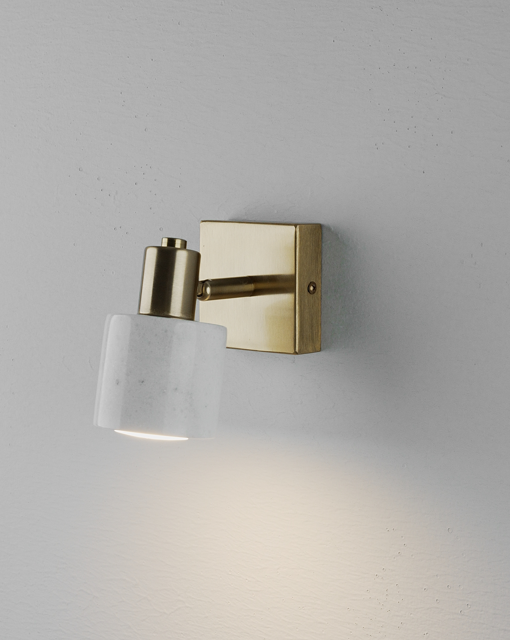 Настенный спот Moderli коллекции Malet воплощает в себе минимализм и благородство. Цилиндрический плафон выполнен из белого мрамора, который эффектно сочетается с корпусом из металла золотистого цвета. Такая комбинация делает светильник не только функциональным элементом освещения, но и стильным акцентом в интерьере.