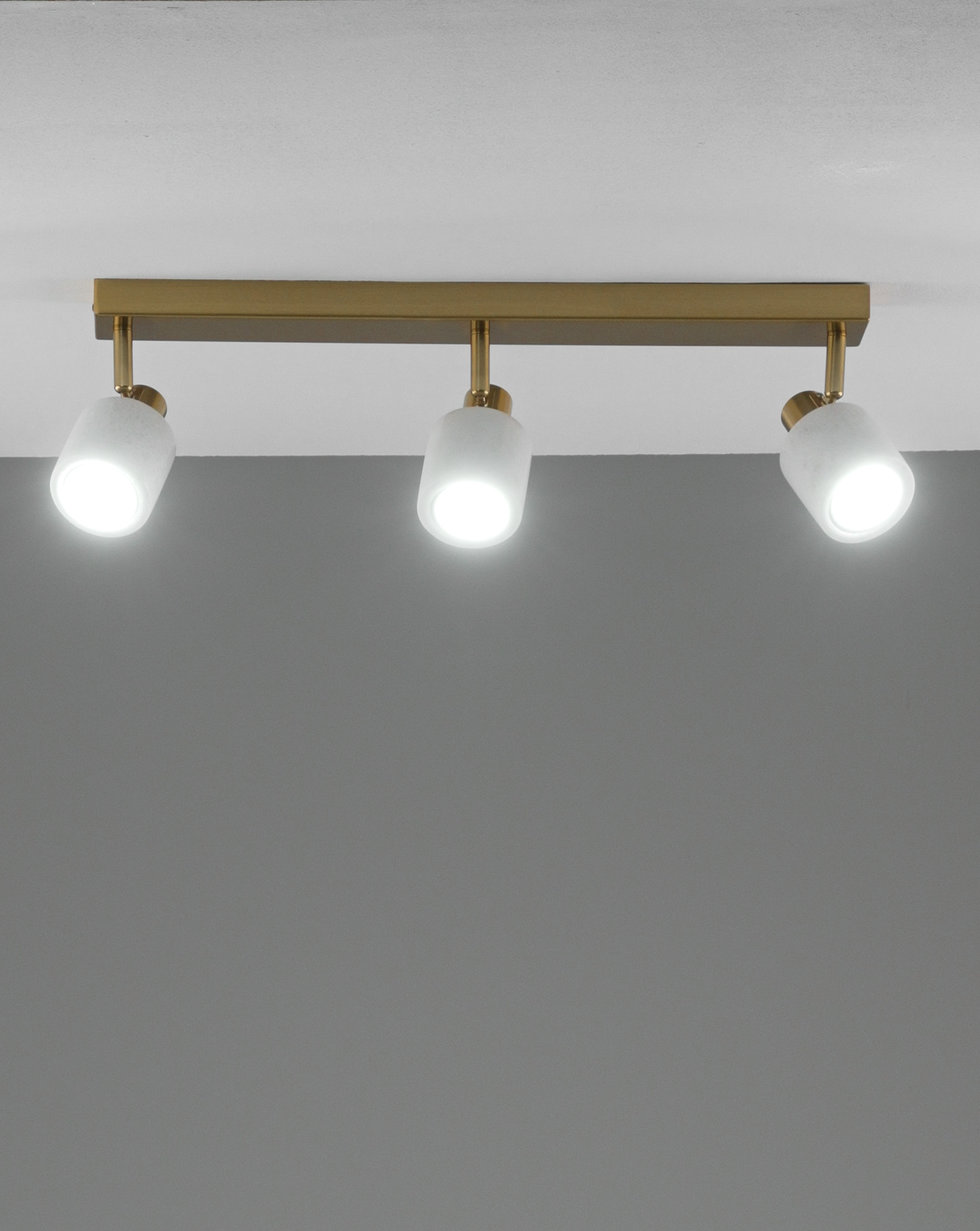 Модель оснащена тремя источником света с цоколем GU10, поддерживающим лампы мощностью до 50 Вт каждая. Подходит как для ламп накаливания, так и для LED. Направленный вниз свет идеально подходит для локального освещения и акцентной подсветки, охватывая площадь до 6 квадратных метров.