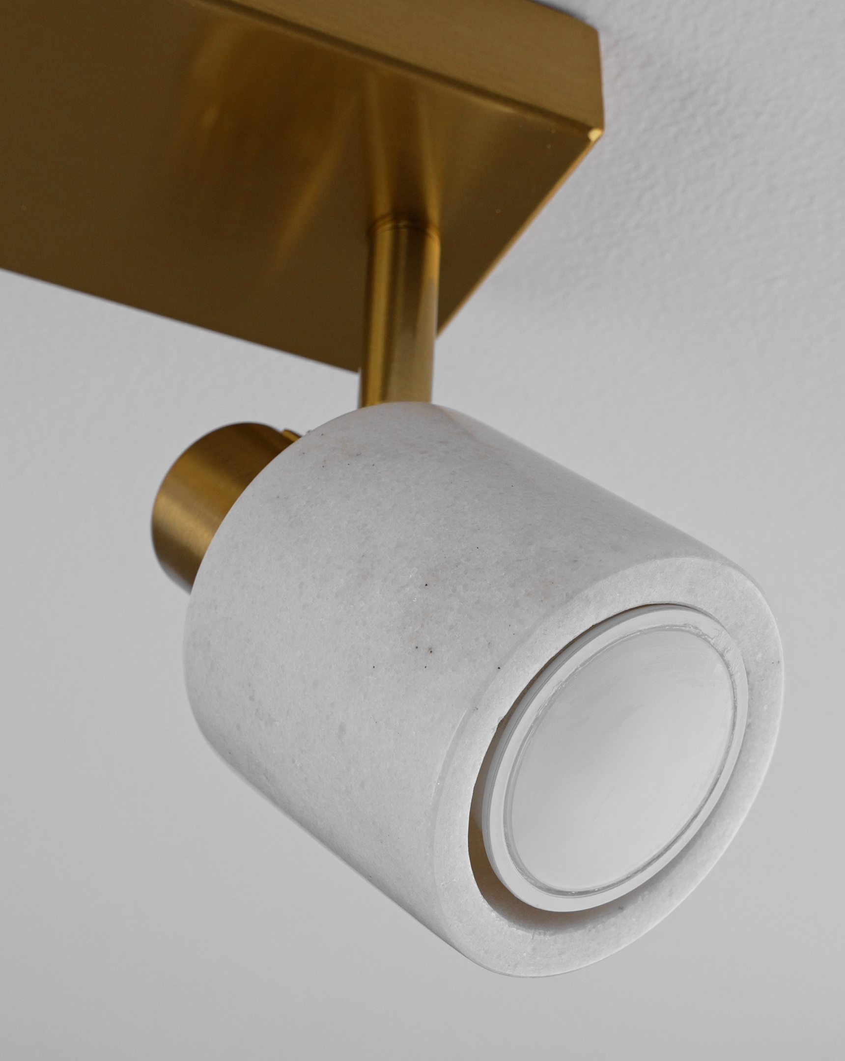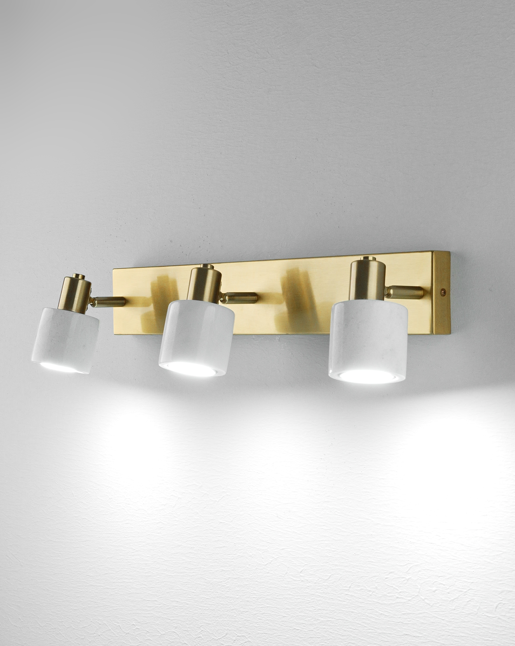 Настенный спот Moderli коллекции Malet воплощает в себе минимализм и благородство. Цилиндрические плафоны выполнены из белого мрамора, которые эффектно сочетаются с корпусом из металла золотого цвета. Такая комбинация делает светильник не только функциональным элементом освещения, но и стильным акцентом в интерьере.