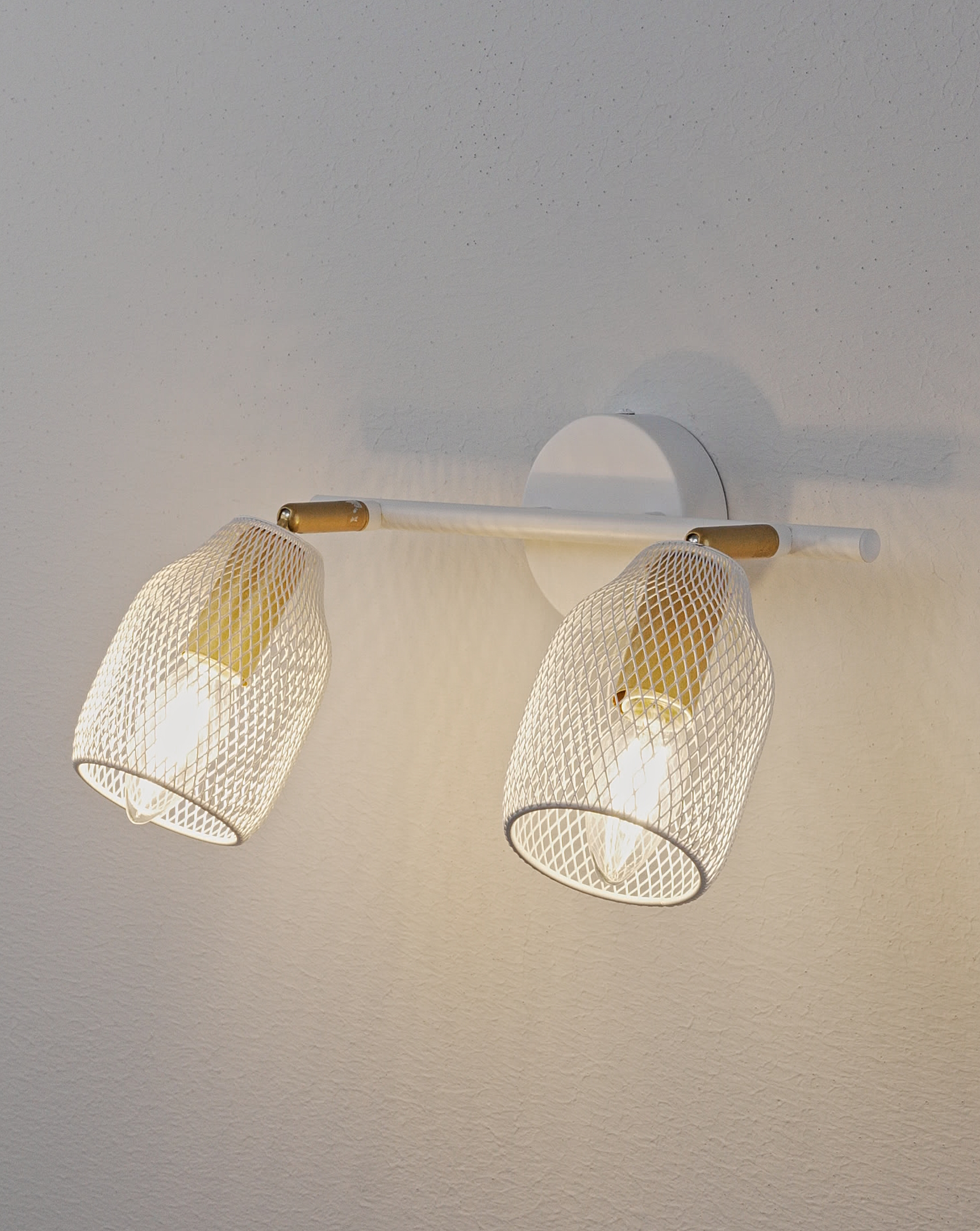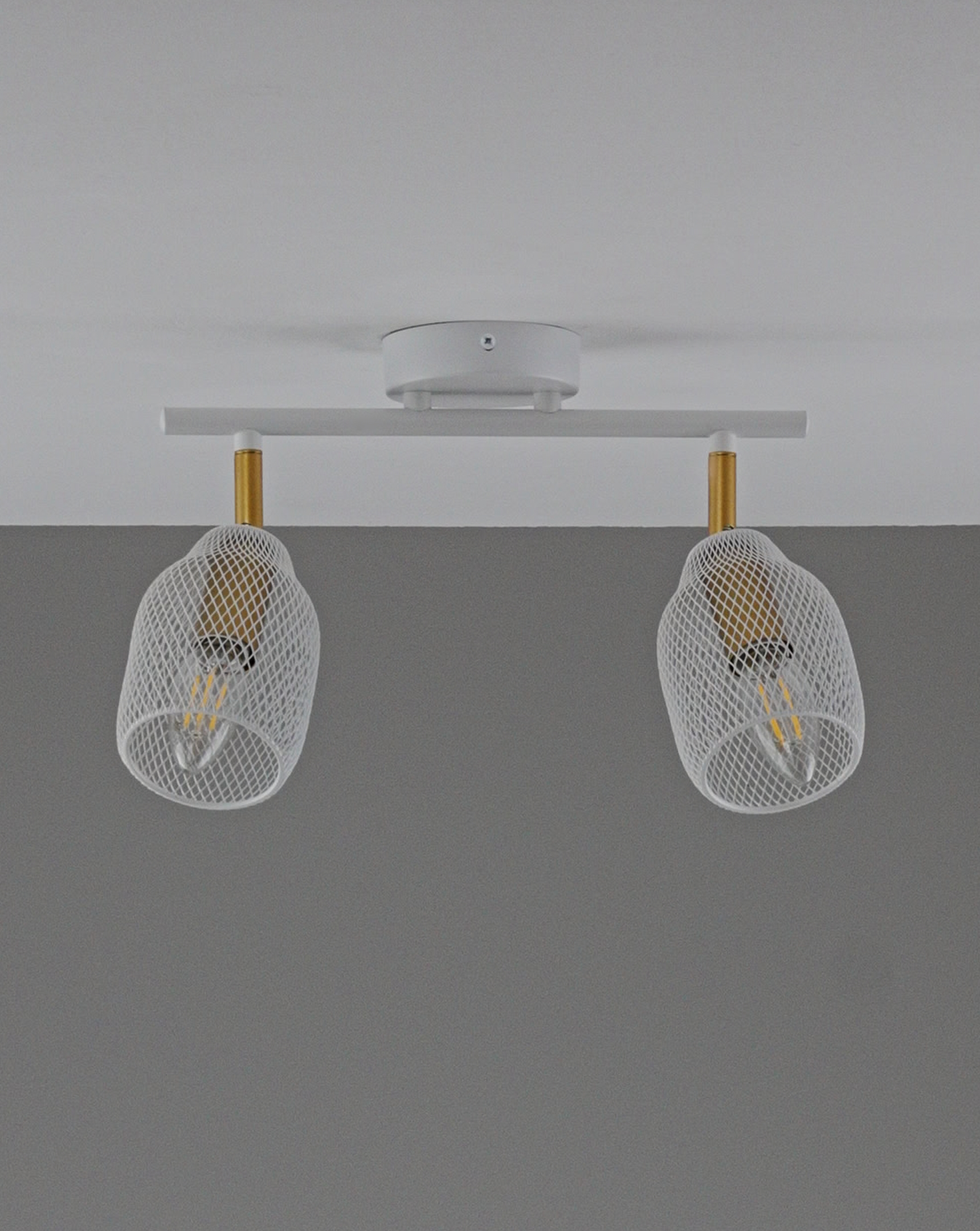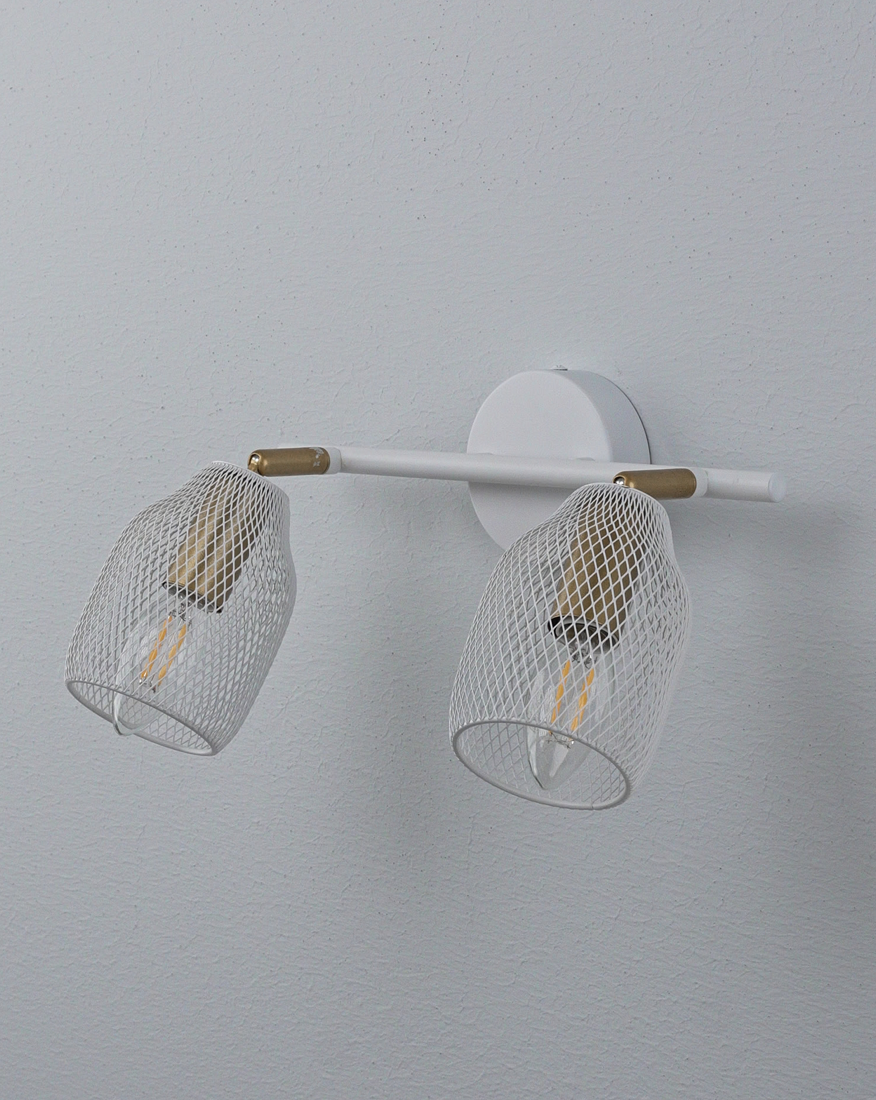 Спот из коллекции Adalina на два плафона легко впишется в интерьер в стиле лофт. Белые металлические плафоны с сетчатой структурой выглядят эффектно и придают светильнику индивидуальность. Их форма напоминает вытянутую каплю — плавные линии смягчают строгий силуэт.