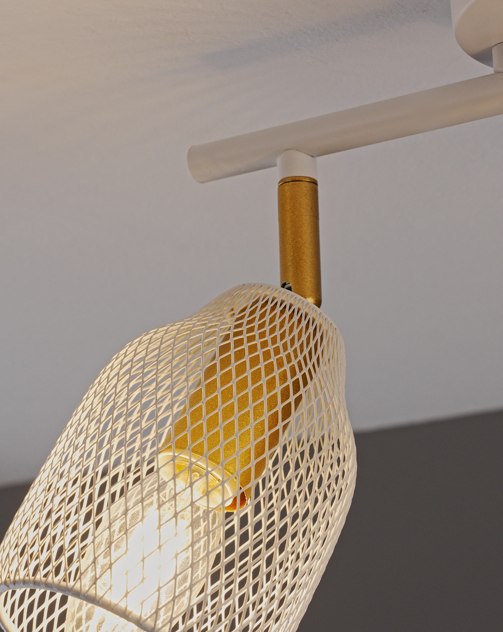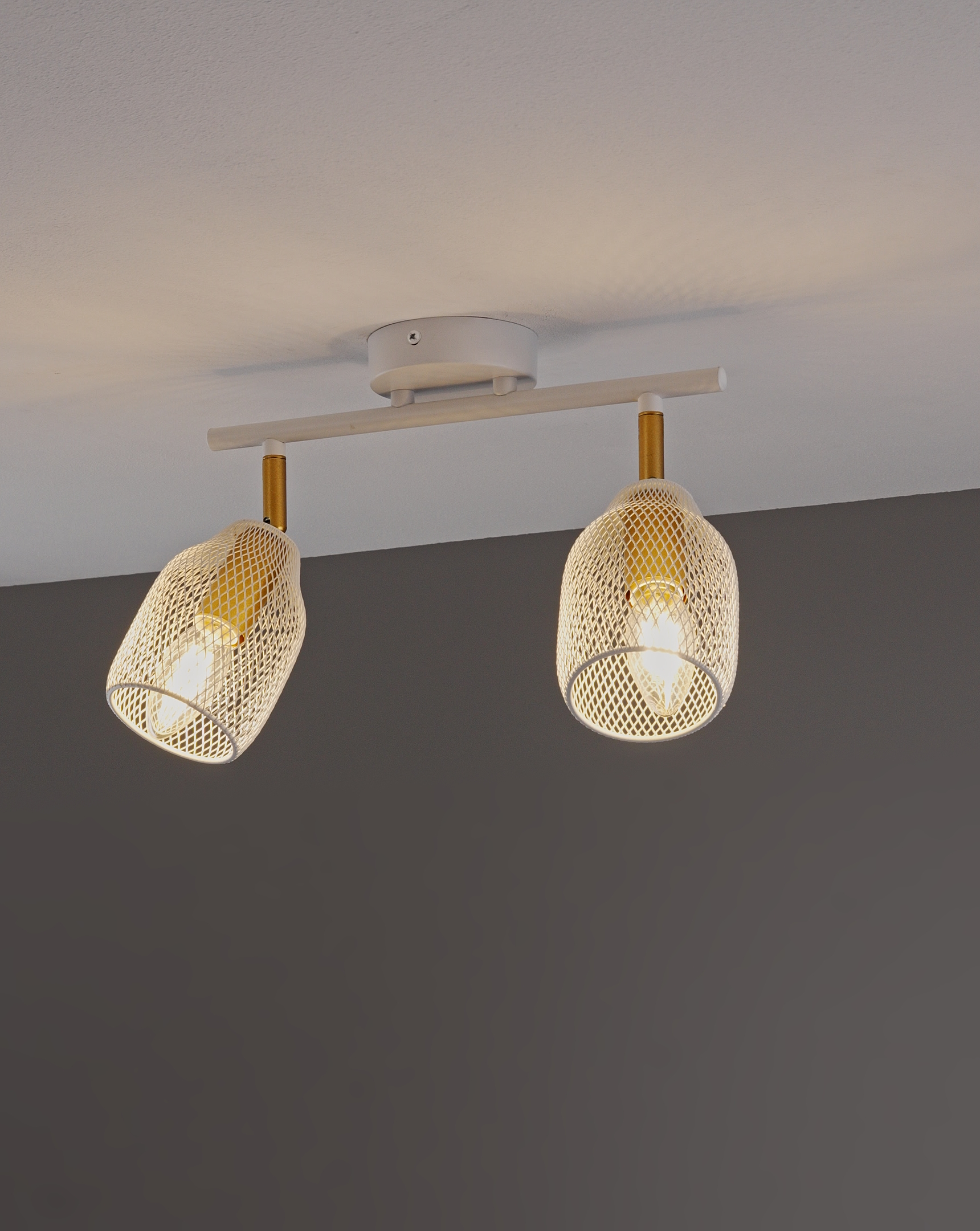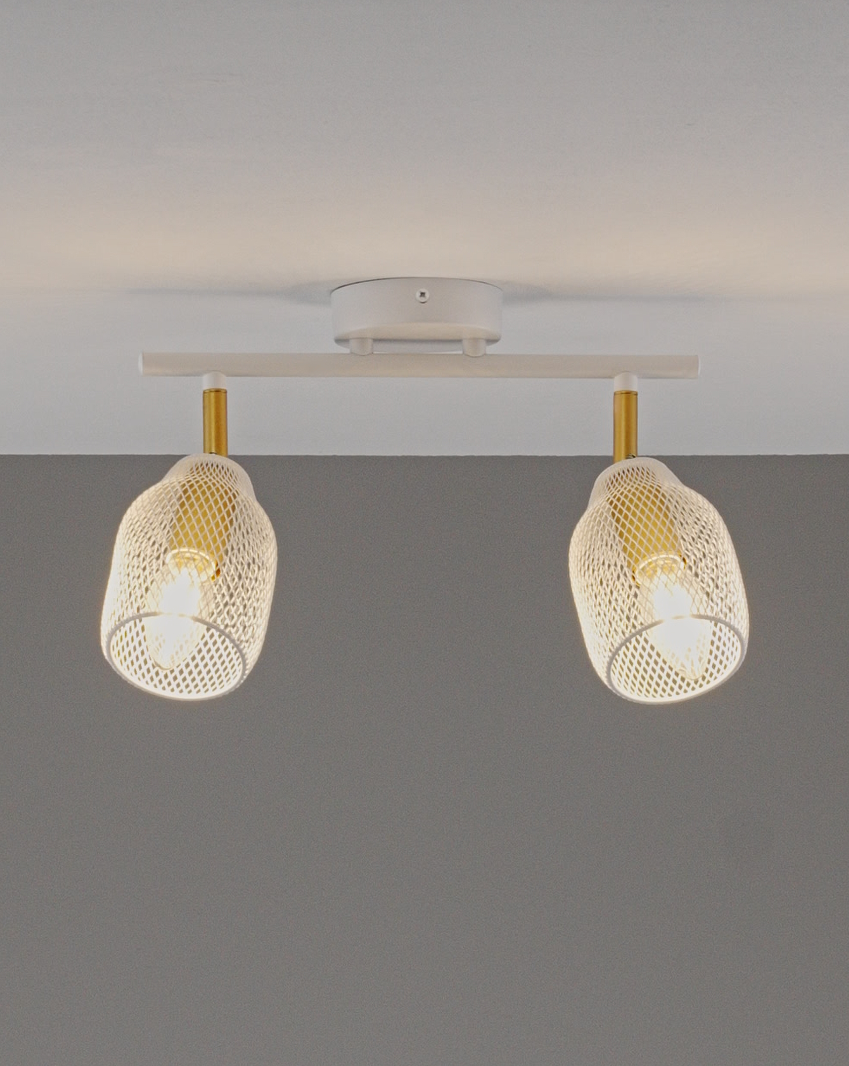 Спот из коллекции Adalina на два плафона легко впишется в интерьер в стиле лофт. Белые металлические плафоны с сетчатой структурой выглядят эффектно и придают светильнику индивидуальность. Их форма напоминает вытянутую каплю — плавные линии смягчают строгий силуэт.