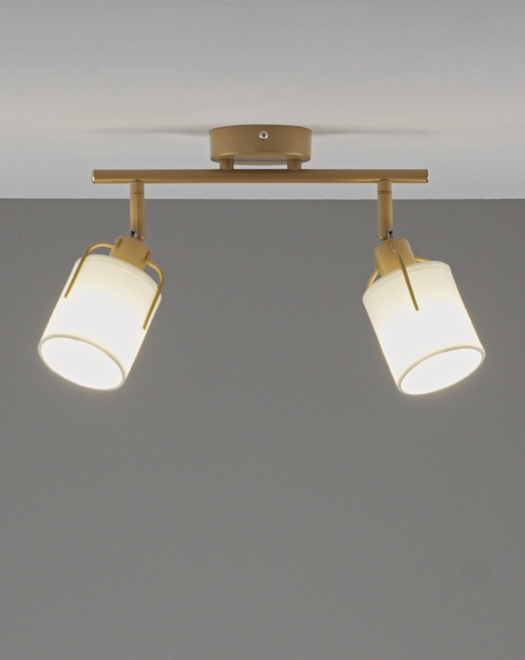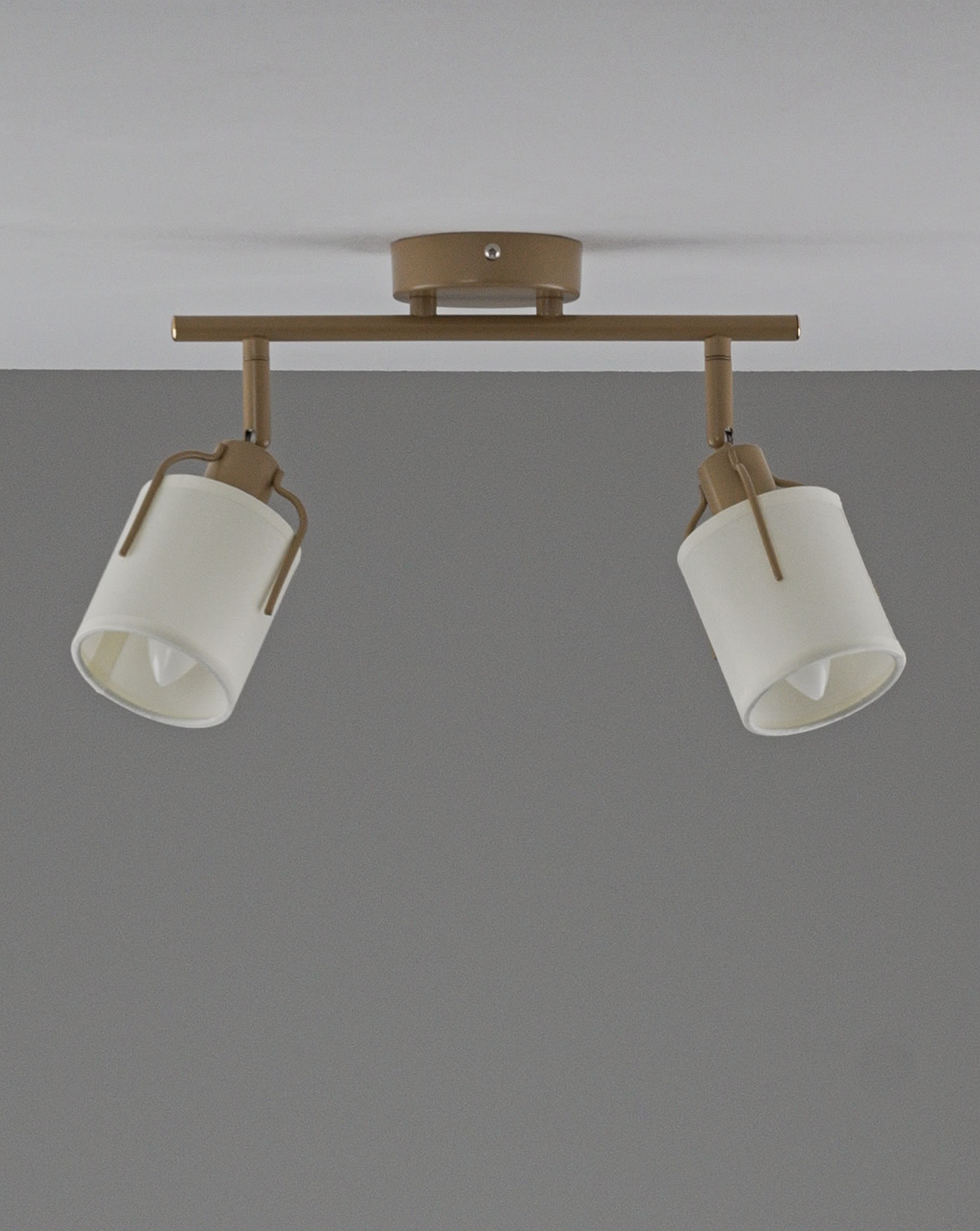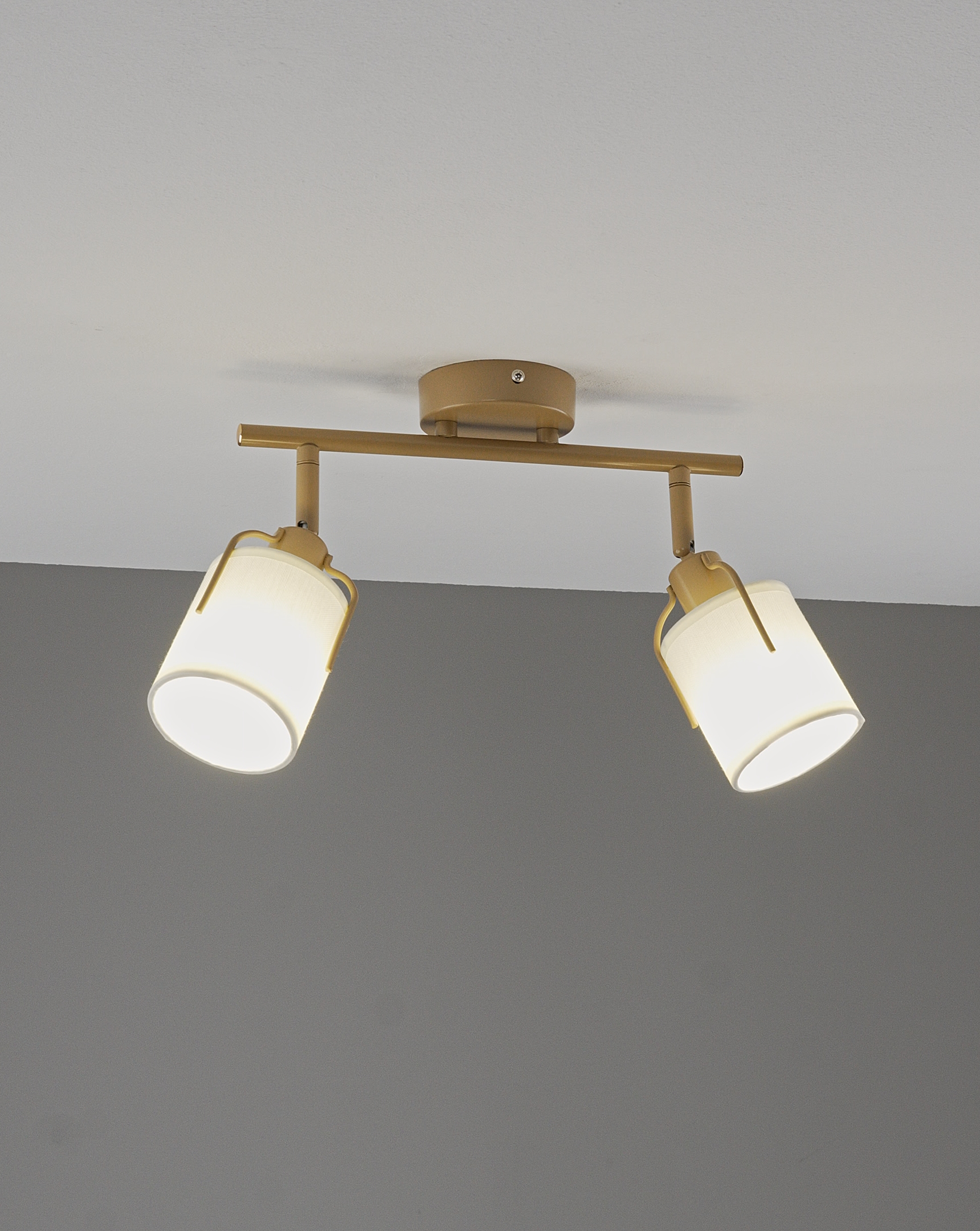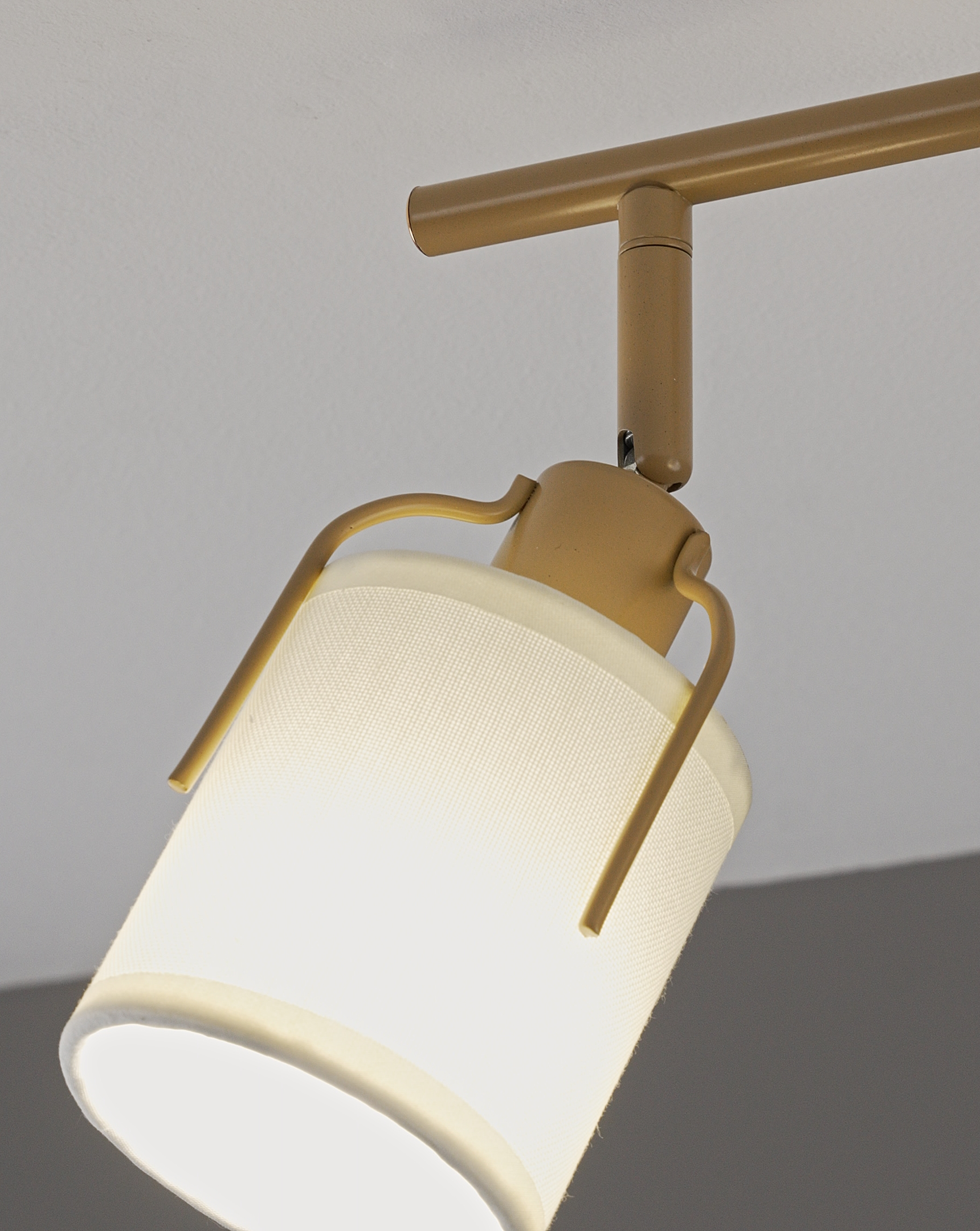 Плафоны изготовлены из прочного текстиля, корпус — из матового металла золотого цвета. Эти материалы устойчивы к повседневному износу и легко сочетаются с мебелью и отделкой в современном интерьере.