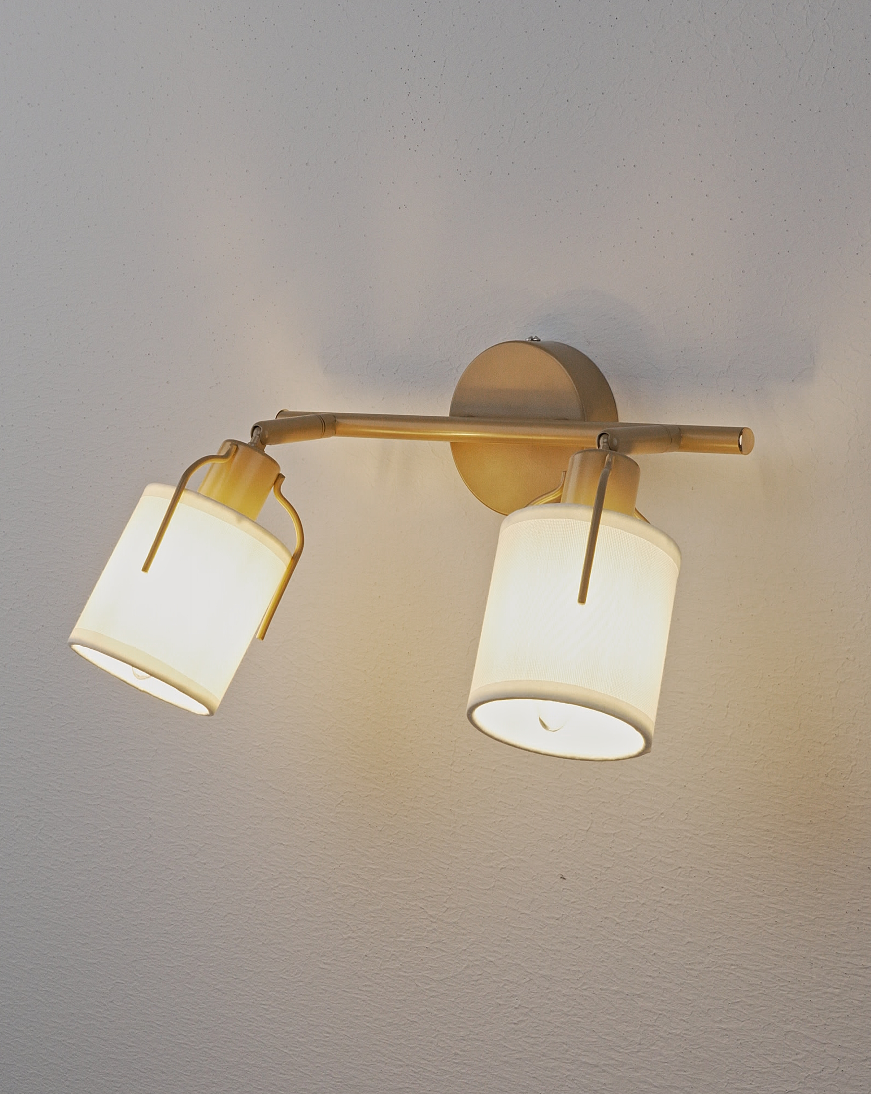 Светильник оснащён поворотными плафонами, что позволяет легко регулировать направление света — вниз или в сторону. Это делает модель особенно удобной для использования в зонах отдыха, у кровати или в прихожей.