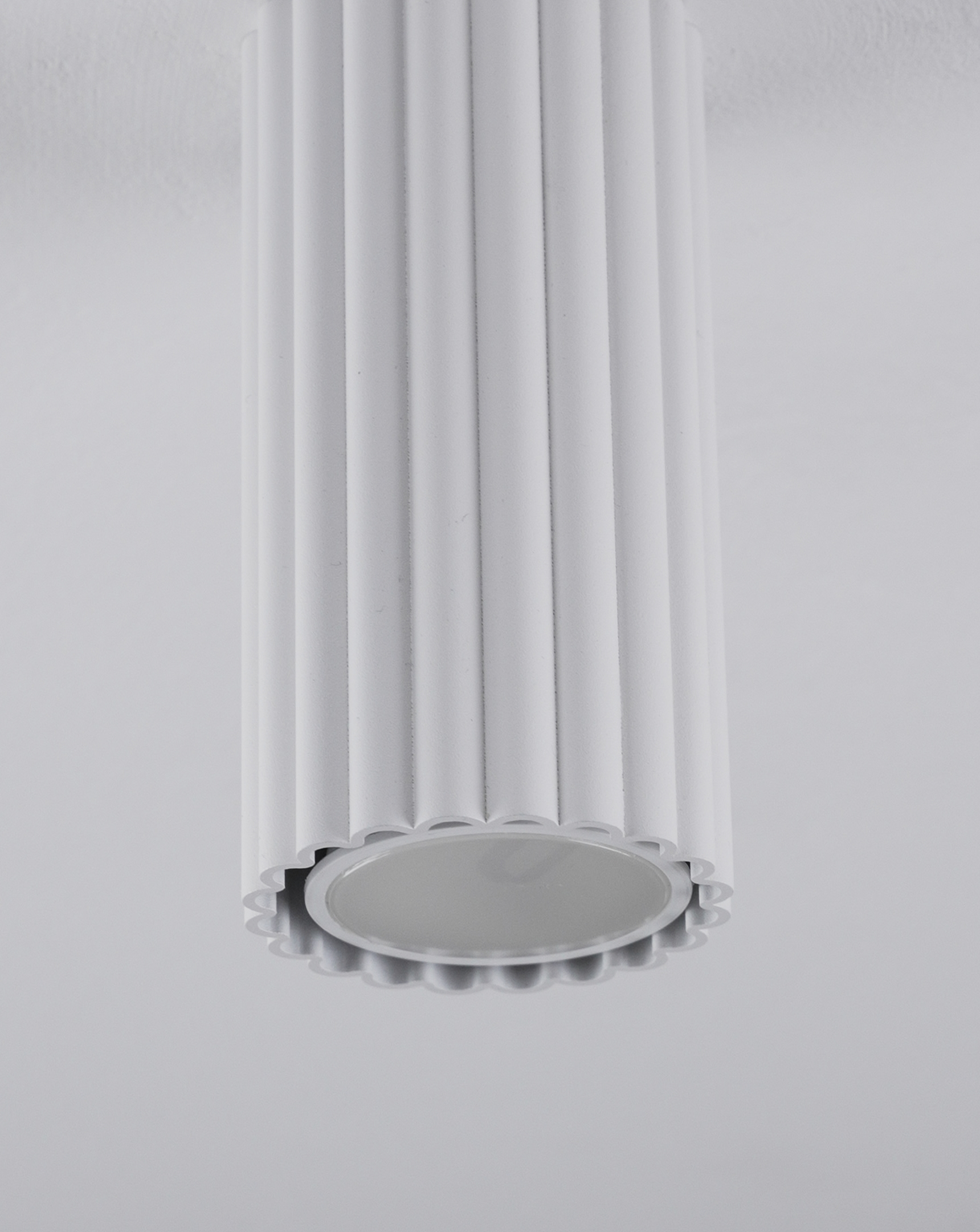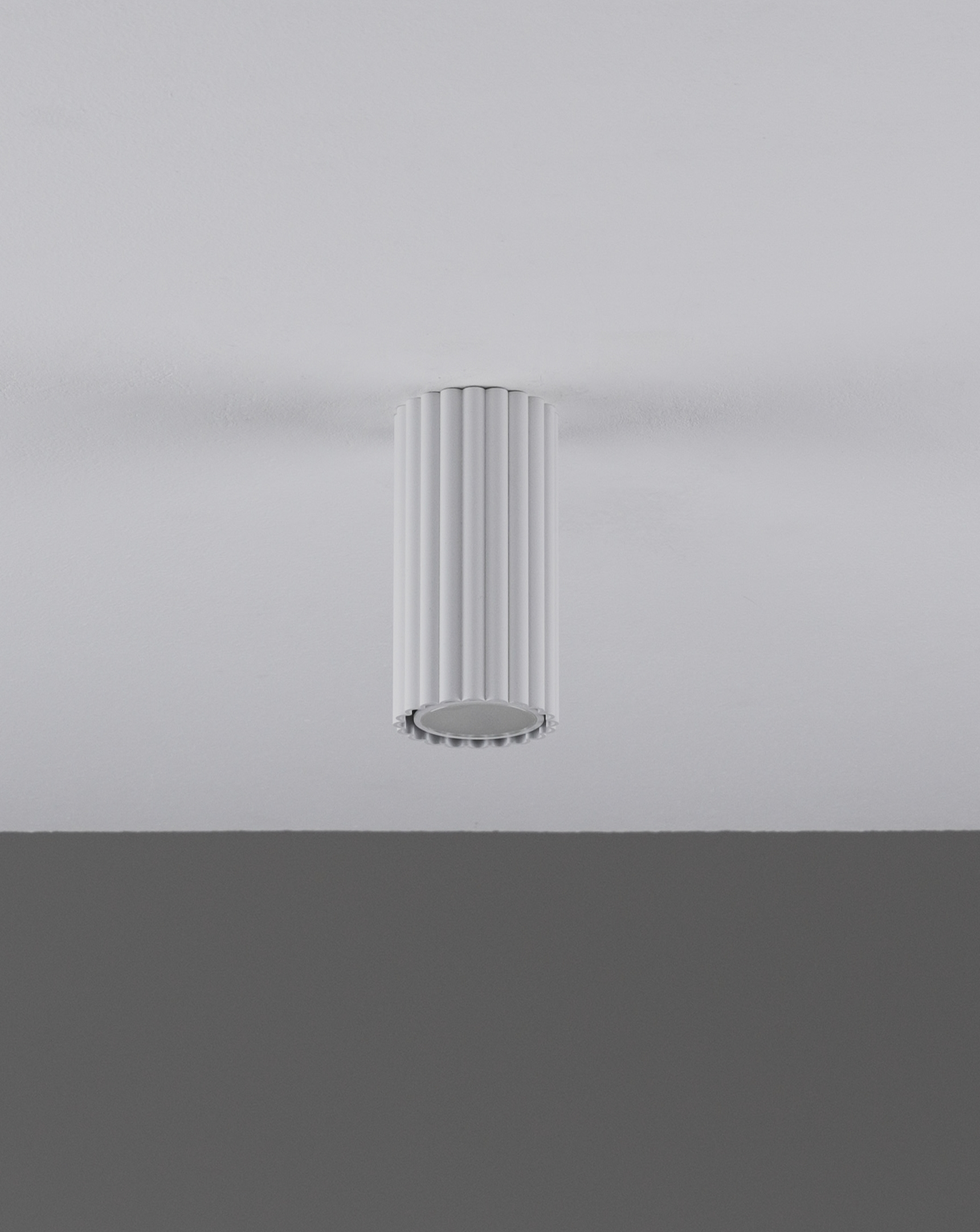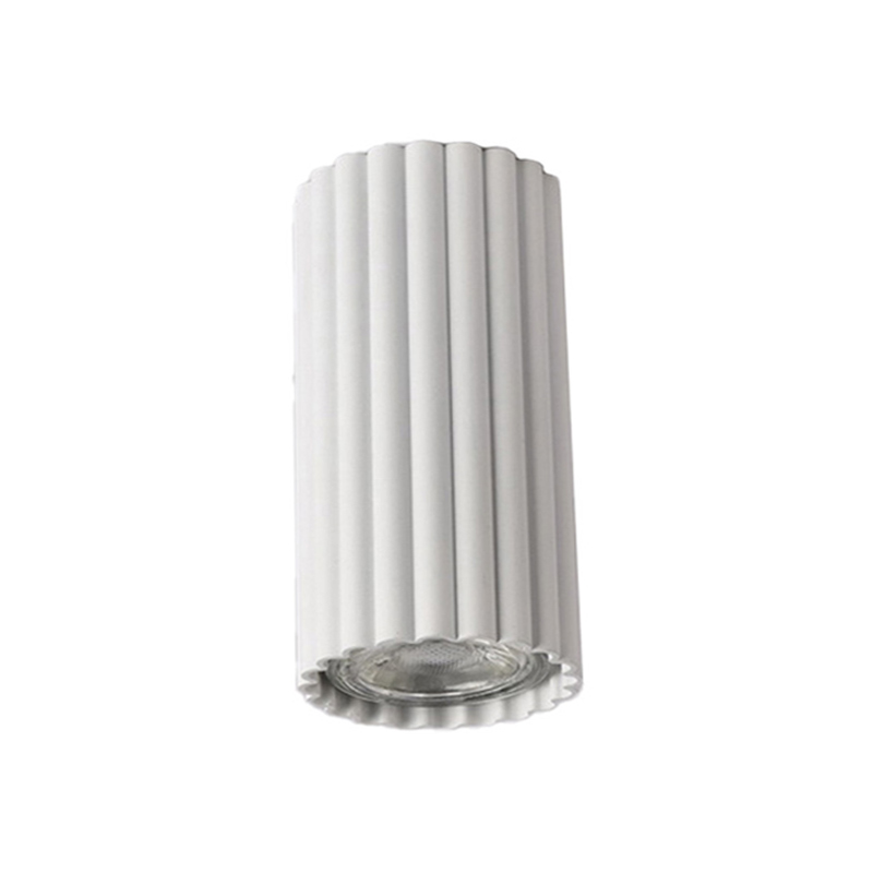 Плафон выполнен из прочного металла с матовым покрытием. Вытянутая цилиндрическая форма светильника с вертикальной ребристой фактурой и лаконичный цвет делают его универсальным и подходящим для разных интерьеров, от современных до лофт-стилей.